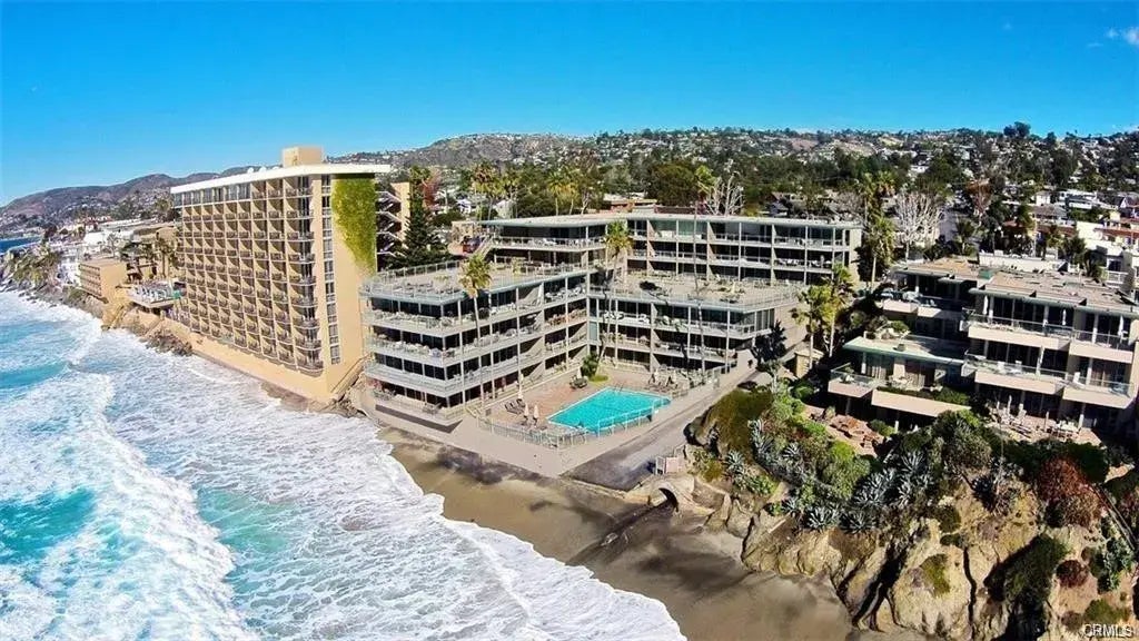 Perfectly located, stunning remodeled oceanfront unit! Beautiful wood porcelain tile floors throughout, LED recessed lighting, and ceiling fans are bright and light. The gourmet kitchen has upgraded cabinets with Italian Porcelain counters, backsplash and all-new stainless steel appliances. The larger master bedroom has mirrored wardrobe doors with custom closets. The master bath is like a spa with a large walk-in shower and dual vanity sinks. The guest bathroom has a tub/ shower with dual sinks and a stackable washer/dryer. The second bedroom is perfect for guests! The Sands has direct access to the beach, swimming pool, and decks. The building has Elevators for easy access to the parking garage. This property is in the heart of Laguna Beach and is walkable to town, shops, and restaurants.