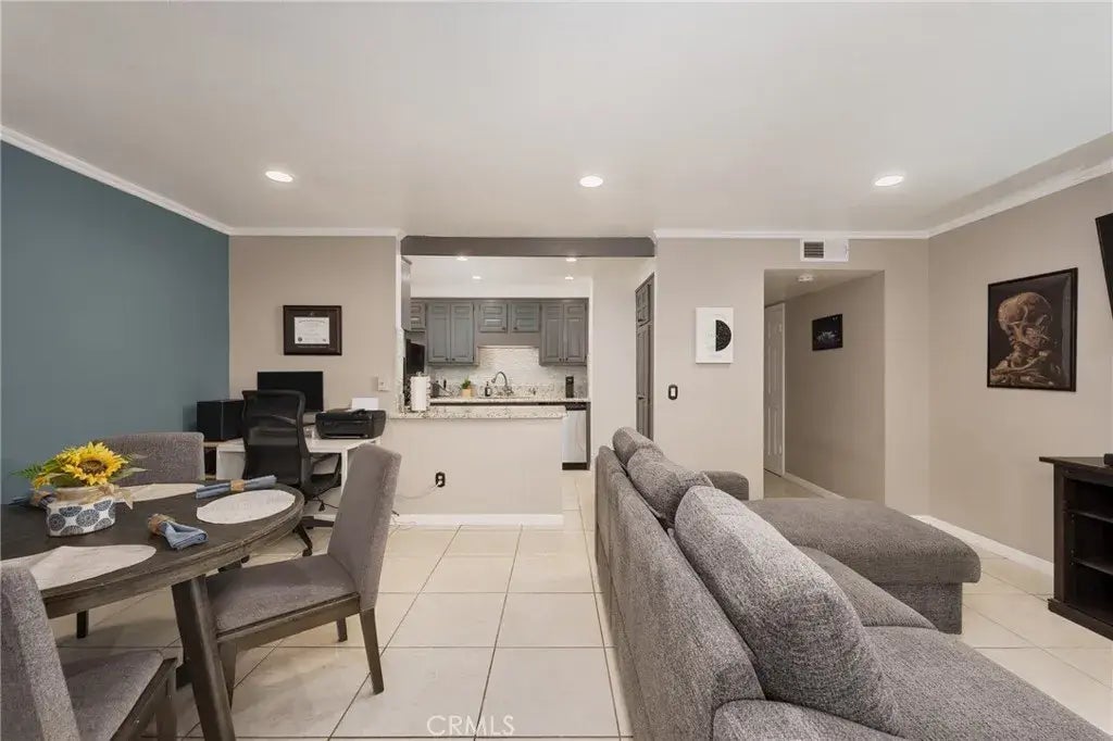 This stunning ground-floor condo in the gated Villa Warner community has been thoughtfully updated with modern touches throughout. The kitchen is a standout with its granite countertops, stainless steel appliances, and custom cabinetry that perfectly balance style and function. The spacious living room opens to a private patio with upgraded lattice panels, offering a peaceful outdoor space. The bathroom has been completely refreshed, featuring granite counters, a sleek vanity, and updated fixtures. The oversized master bedroom provides plenty of closet space with mirrored doors and a calm, relaxing atmosphere. With tile flooring, recessed lighting, smooth ceilings, and designer details, this home is move-in ready. Villa Warner offers resort-like amenities, including a pool, spa, fitness center, and clubhouse, in a pet-friendly community. Located close to the beach, shopping, dining, and easy freeway access, this condo is the perfect blend of comfort and convenience.