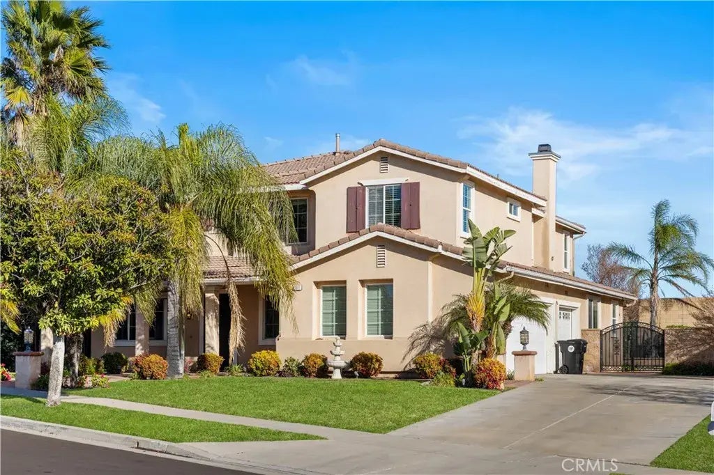 Located at 6611 Torrey Pine Ct, Rancho Cucamonga, this warm and inviting 4,388 square foot Mediterranean style home contains 5 bedrooms and 4 bathrooms. On the first floor of this single-family home, large windows line the main hallway with tiled flooring. The hallway leads to the living room, which features a cozy fireplace next to the open, well-lit kitchen. The kitchen is equipped with granite countertops, separate ovens, a pantry, a wine bar, and a nearby laundry room. Adjacent to the living room is a guest room with its own full bathroom. Head up to the second floor, where youll find three spacious bedrooms. Two of these bedrooms share a convenient Jack-and-Jill bathroom. The highlight is the luxurious master bedroom, which includes a soaking tub, dual sinks, and a large walk-in closet. The house features stucco exterior, terracotta tile roof, and light yellow color complimenting the roof and landscaping. The front entrance has a well-maintained front yard with a variety of plants, including palm trees, shrubs and water fountain. Next to it is a garage connected by a walkway that leads to a porch with columns. Beyond the black gate is the backyard with a playground set accompanied by colorful flowering shrubs and trees along the high brick walls. To the left of the playground is a built-in barbecue area and a swimming pool separated by a black fence, scenic with the mountains in the background, perfect for outdoor fun with family and friends around the cozy fireplace. This stunning home offers the perfect blend of elegance, functionality, and comfort, all within the pr