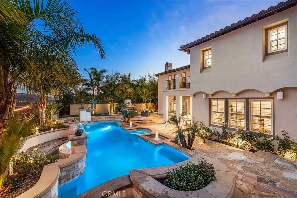 Located in San Clemente's prestigious community of Talega, this exquisite luxury home offers a harmonious blend of modern comfort and natural beauty. The spacious coastal South Orange County residence has 5 bedrooms, 5.5 bathrooms, over 4,700 square feet of living space, and 180-degree unobstructed hillside views. This beautiful home features an open floor plan with high ceilings. The gourmet kitchen is equipped with premium appliances, including a six-burner stove and NEW dual ovens ideal for culinary enthusiasts. The main floor also includes hardwood flooring, a guest suite, family rooms, 4 fireplaces, and a central courtyard to bring it all together. The primary bedroom offers a spacious built-in closet, a cozy fireplace, his & her sinks, soaking bathtub, double-entry shower, and a walk-out deck. A spiral staircase walks you out from the deck to your own backyard resort. The outdoor living space is equally impressive featuring a private heated infinity pool, spa, swim-up bar, and a custom-built barbecue area overlooking the panoramic view. The fully paid for solar panels generate a large part of the energy for the home. Additional highlights include a large garage, workout room, central air conditioning on each level, 2 dishwashers, a bonus room, an office, and brand-new state-of-the-art pool equipment. The Talega community offers a clubhouse, pools, sports parks, playgrounds, hiking and biking trails, sand volleyball, tennis courts, basketball courts, and so much more. This home is located within the Capistrano Unified School District and is near highly rated schools. W