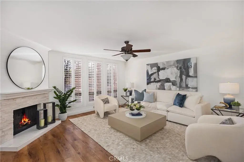 Bright and airy, this beautifully remodeled condominium exudes a clear feeling of openness with each step throughout while boasting a uniquely private location in the very popular, gated community of Finisterra on the Green - Baja that overlooks the prestigious and private Mission Viejo Country Club and golf course. This designer model home has all the fine finishes and fixtures with a modern and clean color palette, freshly painted walls and beautiful laminate type flooring. This is the one you have been looking for! The open and spacious floor plan is laid out all on one level and features a generously sized primary suite, spacious secondary bedroom along with two upgraded bathrooms, huge living room with fireplace, separate formal dining room, remodeled kitchen with breakfast nook and laundry closet. There are too many quality upgrades to list, so come see for yourself! Please note: this property is ground level with no exterior stairs or steps to the entryway (only a couple small steps inside the property to access the huge living room). Excellent central location with close proximity to local shopping centers, the 5 Freeway, grocery stores, parks, schools, Mission Viejo Mall, and Lake Mission Viejo! Enjoy Lake Mission Viejo private membership included with members only access to boating, fishing, sailing, paddle boarding, swimming, private beaches, summertime concerts, movies, holiday festivities & 4th of July firework extravaganza! Enjoy one of the lowest property tax rates in the entire county and no Mello Roos! HOA dues include water and trash utilities.