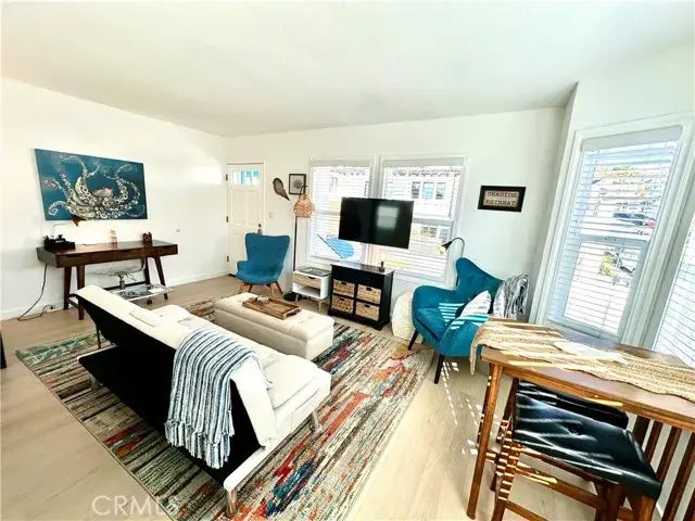 FULLY FURNISHED Prime location in downtown San Clemente! This is the upper front unit, with lots of windows and natural light. Brand new kitchen, appliances, flooring, baseboards & complete interior paint. New & newer furnishings throughout. Building is meticulously maintained. New onside coin laundry. Back area has BBQ, umbrellas, fire pit and lounge furniture. ALL UTILITIES, Cox WiFi, Direct TV, are INCLUDED. Street parking. This is a very quiet building.