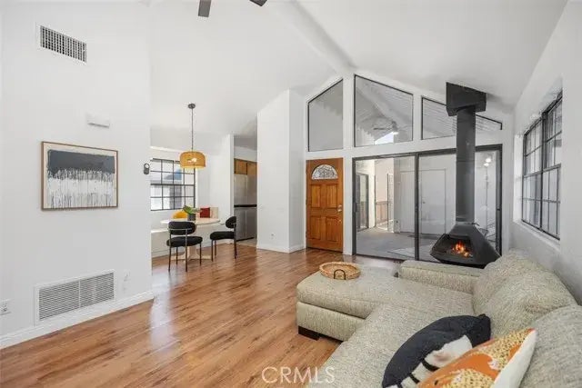 Welcome to this stunning end-unit condo, offering the perfect blend of style, comfort, and privacy. This spacious 1-bedroom, 1-bathroom home features soaring vaulted ceilings, creating an open and airy atmosphere throughout. The large kitchen is a chef's dream, complete with plenty of counter space and storage. Enjoy your meals in the built-in dining nook, perfect for cozy dinners or entertaining guests. The mid-century fireplace adds warmth and character to the living space, making it the perfect place to relax and unwind. Step outside to your own large, private patio, shaded by mature pine trees, offering a tranquil retreat just steps from your door. The primary suite is a true sanctuary, featuring an oversized walk-in closet for all your storage needs. The updated bathroom is sleek and modern. Convenience is key with laundry included within the unit, making chores a breeze. Enjoy the peace of mind that comes with a completely separate unitno shared walls, no one above or below you. This home offers the ultimate in privacy and tranquility. Located in a prime Laguna Hills location, you're just minutes away from shopping, dining, and entertainment options. Dont miss the chance to make this incredible condo your ownschedule a tour today!