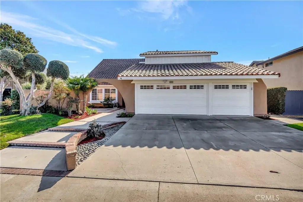 This exquisite residence features five bedrooms, including one conveniently situated on the ground floor. The home is adorned with elegant upgrades throughout, notably a remodeled kitchen, new hard surface flooring, recessed lighting, and custom paint. The upgraded kitchen is distinguished by quartz countertops, modern white cabinetry, high-end stainless-steel appliances, and a spacious pantry. The inviting living room includes a fireplace and opens to a generously landscaped backyard, which boasts a private pool and spa. Upstairs, you will find four generously sized bedrooms, including the primary suite, which offers an en-suite bathroom complete with dual sinks, a vanity, a walk-in shower, and a large soaking tub. This property is nestled in a private cul-de-sac within The Award community in Fountain Valley.