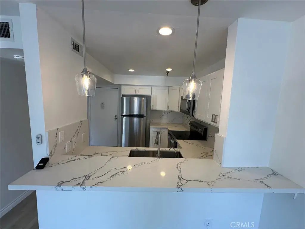 Brand new complete remodel! Nice & quiet location. All new flooring, base, paint, new kitchen cabinets, with quartz counter tops, new appliances including refrigerator, dishwasher, range & microwave. New bathroom tub & surround, new vanity, new mirror closet sliding doors, all new lighting, new window coverings, etc. This is a ground floor, end unit. Nice private patio off living and bedroom. Easy access to carport parking space, HOA spa, and outdoor BBQ & lounge area. Community Laundry on the 3rd level, with Elevator access. This is a secure building with key access only. Remote control access to your 1 car covered carport space. Very well maintained Vista Oceana Condo Building, close to surf spots, freeway access nearby, bike to downtown San Clemente restaurants, wine bar's & shopping. Or, easy walk to Trolly connection. This unit is at the back of the building, and does not have the freeway noise that the front facing units have.