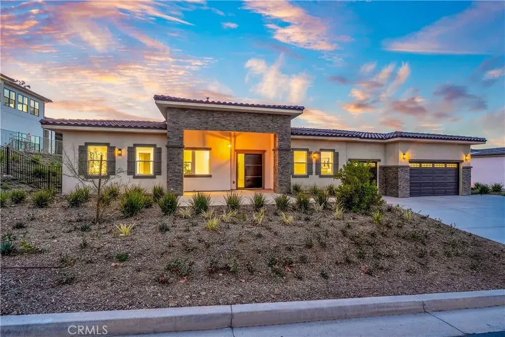 NEW CONSTRUCTION!! MOVE-IN READY!! Welcome to 4186 Jameson Drive, a stunning custom New Construction residence nestled in the most prestigious gated community of Crown Ranch Estates in South Corona. This exceptional single-story home boasts 4,634 square feet of refined living space on a nearly 1-acre lot, featuring 5 generously appointed bedrooms, 5.5 lavish bathrooms, and Office that could be used as the 6th bedroom. The gourmet kitchen is a culinary dream, equipped with top-tier Thermador appliances, radiant Mont Blanc Quartzite countertops, and an exquisite marble mosaic tile backsplash illuminated by LED under-cabinet lighting. The expansive kitchen island, with its striking waterfall edge, is designed to impress guests and provide the perfect setting for memorable gatherings. Additionally, a walk-in pantry offers ample storage and organization. The opulent master suite offers a spa-like en suite bathroom with a full-height tiled shower and a luxurious free-standing Roman tub. Premium porcelain tile floors adorn all bathrooms and the laundry room, which is a separate, convenient space. Water-resistant laminate flooring adds elegance throughout the home. Each bedroom functions as a private sanctuary, designed as an en-suite with spacious walk-in closets. Relax in the grand great room beside the 42-inch linear gas fireplace, or step outside to the expansive covered patio, ideal for al fresco dining and entertaining. The attached 3-car garage, featuring 8-foot-tall garage doors, provides abundant space for vehicles and additional storage. Energy-efficient amenities include