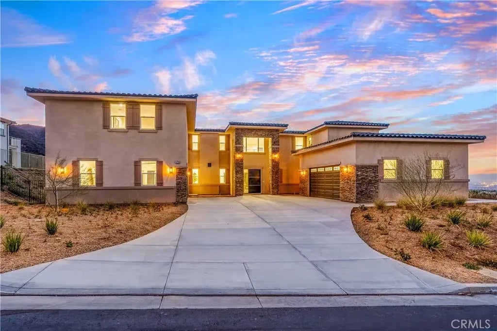 NEW CONSTRUCTION!! MOVE-IN READY!! Welcome to 4172 Jameson Drive, an exquisite custom New Construction in the most prestigious gated community in South Corona: Crown Ranch Estates. This stunning 5,442-square-foot residence on a nearly 1-acre lot offers 5 spacious bedrooms (including downstairs Bedroom and Bathroom, and Office), and 5.5 refined bathrooms, each like a private suite with a full bathroom and walk-in closet. Indulge in unparalleled luxury with high-end finishes, modern design elements, and an entertainer's kitchen featuring Thermador appliances, Mont Blanc Quartzite countertops, and a marble mosaic tile backsplash. The kitchen's expansive waterfall island adds an extra touch of elegance and is perfect for hosting. Relax in the sophisticated master suite with a spa-like bathroom, or enjoy seamless indoor-outdoor living with a covered patio, overhead balcony, and breathtaking views. The property includes two oversized attached 2-car garages with a storage room and laundry room. The beautifully designed backyard offers a blank canvas, inviting you to create your own personalized dream oasis, where the possibilities are endless. Designed with energy efficiency in mind, the home features two-stage AC units, twin tankless water heaters, spray foam insulation, and smart home readiness with CAT6A data cabling.