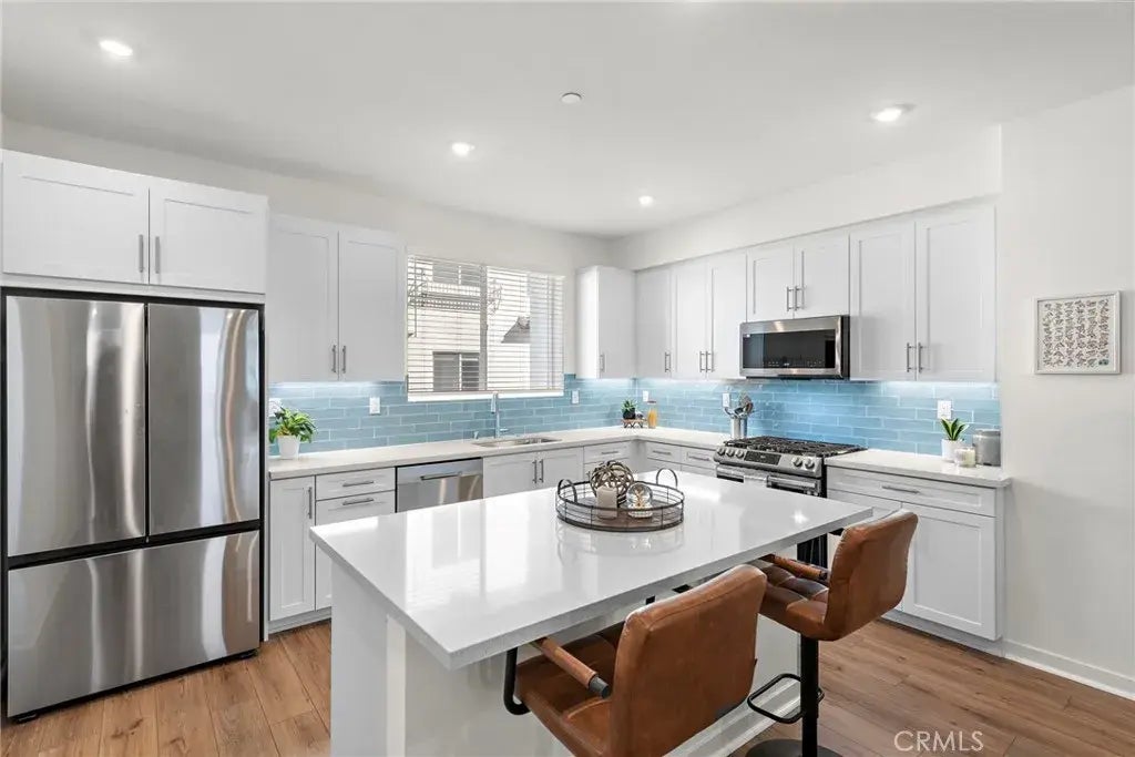 Nestled in the charming coastal town of San Juan Capistrano, just moments from the historic San Juan Mission and Los Rios district. This stunning townhouse at the newly developed Avelina community offers modern luxury living in an ideal location. Boasting a four-bedroom, three-and-a-half-bath floor plan, built in 2023, features a high-end living experience, complete with an open-concept layout, and abundant natural light. Upon entry through a private courtyard, the main level showcases a versatile room and full bathroom, perfect for use as an office, gym, flexible living or fourth bedroom. The second level leads to a beautifully appointed gourmet kitchen, complete with stainless steel appliances, a designer tile backsplash, quartz countertops, a farmhouse sink, and a grand island. The kitchen also features a walk-in pantry and a built-in desk/study space, providing both functionality and style. This space flows seamlessly into the dining area, while the adjacent living room offers an open-concept layout and opens up to a charming exterior terraceideal for enjoying Southern Californias indoor-outdoor lifestyle. A powder room completes this level, adding to the homes thoughtful design. The upper level is dedicated to three additional bedrooms, including a luxurious primary suite with a designer bathroom featuring dual vanities, a generous walk-in closet, and a spacious shower. Two additional guest rooms share a sleek full bathroom, and a convenient laundry area rounds out this floor. Notable features include recessed lighting throughout, luxury vinyl plank flooring, high-end