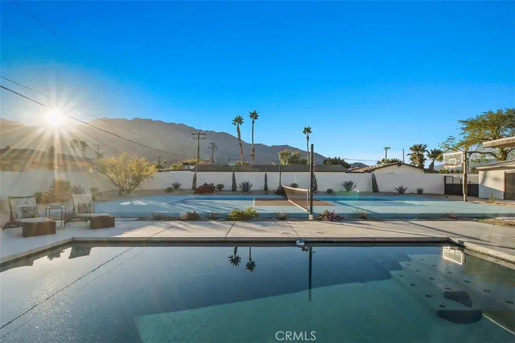PRIVATE PICKLE BALL COURT in this stunning and FULLY RENOVATED residence where luxury meets tranquility. This 4-bedroom, 3-bathroom oasis sprawls across a generous 2237 sq. ft., allowing ample space for comfort and elegance. Nestled in a desirable location, this home offers breathtaking mountain views that promise to captivate. The expansive nearly 1/2 acre lot on FEE land provides boundless possibilities and the freedom to design your personalized desert sanctuary. Elevate your lifestyle with a private pickleball court, an ideal addition for sports enthusiasts. Also inlcuded with this special home is a brand-new pool, an essential luxury for the desert lifestyle, guaranteeing relaxation and refreshment. Wood accent eaves with recessed LED lighting along with smooth stucco show true updated luxury on the exterior of this home. Inside, experience meticulous renovation, with every detail carefully considered, ensuring a contemporary and inviting ambiance. Revel in the lavish interiors and modern amenities, all designed for your ultimate comfort and pleasure. Whether you aspire to host grand celebrations or intimate gatherings, the spacious living areas and lush exteriors make it an ideal setting. The double pull-through driveway with abundant on-site parking allow easy access for yourself and your guests. The newly constructed glass and metal gates with electric openers create a stunning statement for the front of this home. The property's substantial space and stunning vistas create a unique opportunity to realize every desert living dream you've ever had. Explore the boundl