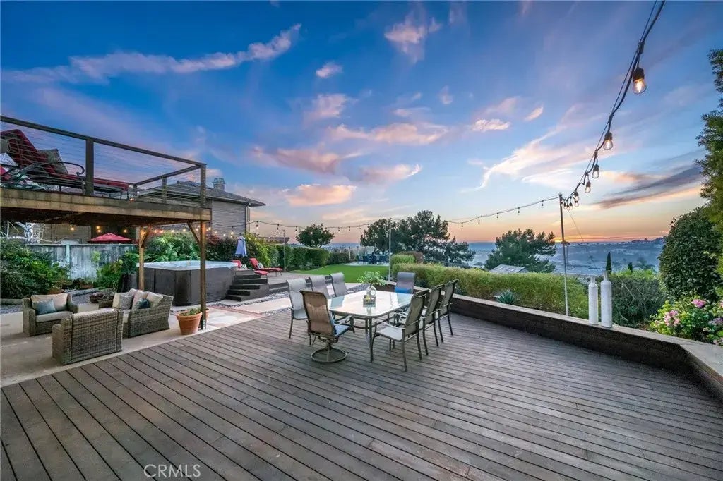 This exquisite 6-bedroom, 3.5-bathroom luxury home spans approximately 4,000 sq. ft. on a 14,484 sq. ft. lot and is perfectly situated on a single-loaded street surrounded by stately homes. Enjoy breathtaking panoramic views stretching to the ocean, with picturesque sunset skies and twinkling city lights as your daily backdrop. As you enter through the custom front door with a built-in screen, a grand foyer welcomes you to the thoughtfully designed interior. The main floor boasts a formal dining room with a wine room, an inside laundry room, and two bedroomsone currently used as an office. The spacious kitchen is a chefs dream, featuring two new KitchenAid 360-degree Max Jets dishwashers with Pro Dry System, a wine refrigerator, and a professional-grade Viking gas range with six burners, a griddle, and double ovens. Upstairs, the generously sized primary suite offers a private retreat with a sitting room, stunning beamed ceiling, and French doors leading to a balcony with sweeping views. The spa-like bathroom includes a soaking tub, a walk-in shower, dual vanities, and a large walk-in closet. Three additional bedrooms and a full bathroom with a dual-sink vanity complete the upper level. The homes expansive family room includes a gas fireplace and opens to the incredible backyard, designed for entertaining or relaxing. Highlights include premium artificial turf, custom Brazilian Tigerwood decks, and a custom 12-person swim spa with resistance jets, water ropes, and more. The backyard also features a variety of fruit trees, a storage shed, and bistro lighting. Additional amen