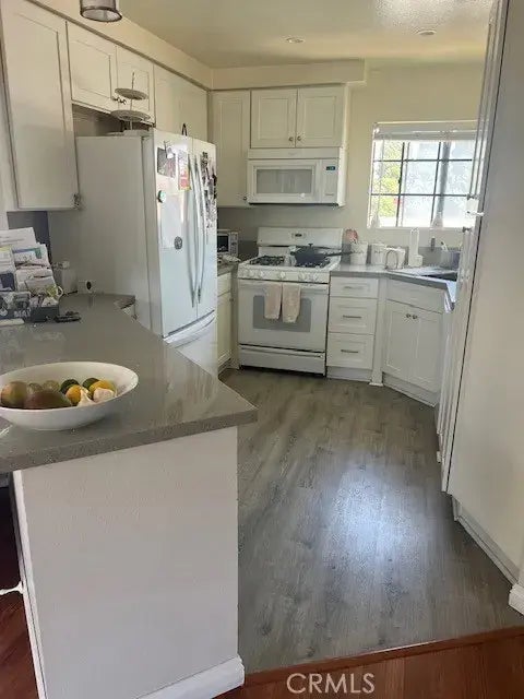 Discover luxury living in this beautifully appointed upper end unit boasting 2 bedrooms, 2 baths, and vaulted ceilings. Enjoy breathtaking vistas of the pool and John Marshall Park from the comfort of your own home. Step into a recently remodeled kitchen featuring all-newer white shaker cabinets, soft-close drawers, pristine Quartz countertops, and a convenient breakfast counter. The spacious living room exudes elegance with upgraded wood laminate floors and a cozy gas fireplace. Both bedrooms are bathed in natural light and offer ample storage with large closets. Access the private balcony from the living room or master bedroom, where you'll also find discreet laundry hookups nestled in a closet. A 2-car detached garage with an automatic roll-up door awaits just steps from your unit. Community amenities include a sparkling pool and soothing spa, perfect for relaxation. Centrally located near schools, dining, and the 5 freeway, this condo offers convenience and comfort in equal measure. Additional features include: Central air conditioning Fireplace Panoramic views Newer flooring New master shower and vanity Owners have spared no expense, with recent upgrades including a brand-new master vanity and shower. Experience meticulous attention to detail in every corner of this exquisite home, from the sleek shaker cabinets to the stunning Quartz countertops. ****FULLY FURNISHED FOR SHORT OR LONG TERM RENTAL****