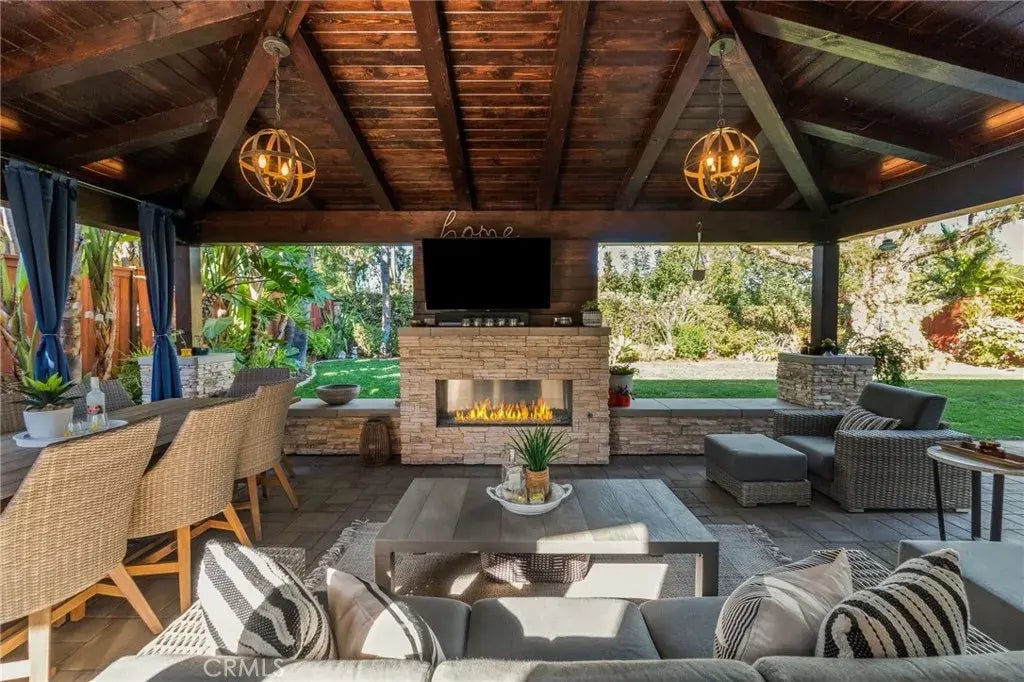 Upscale Living in Contemporary Splendor with Exclusive Features! Welcome to a magnificent blend of modern design and classic comfort in this 4-bedroom, 3 bathroom single-family treasure. Coveted features like high ceilings, hardwood flooring, and a double garage underscore the house's refined yet practical appeal. Recent upgrade include newer air conditioning unit, rain gutters, water heater and furnace, along with a fully remodeled bathroom upstairs. As you step into this two-floor property, you are greeted by an open layout that beautifully combines the elegant living room with its vaulted ceiling, and a dining area bathed in natural light. The kitchen, a chef's delight with custom walnut cabinetry, granite countertops, stainless steel appliances and a convenient eat-in counter, inspires culinary creativity. The vibrant family room, with its inviting fireplace, is a versatile space for entertaining or unwinding. Each of the four bedrooms offers an elevated living experience. The primary bedroom boasts high ceilings, an en-suite bathroom, a walk-in closet with built-ins, and large windows that usher in ample sunshine. The remaining bedrooms, each with high ceilings and large windows, provide serene retreats for relaxation. Stepping outside, you'll discover a front yard that exudes curb appeal, and a backyard oasis thats a homeowner's dream. With lush landscaping, a private covered patio complete with a fireplace and entertainment center, this outdoor space promises countless memorable moments. This private and luxurious outdoor living area was permitted and completed in 20