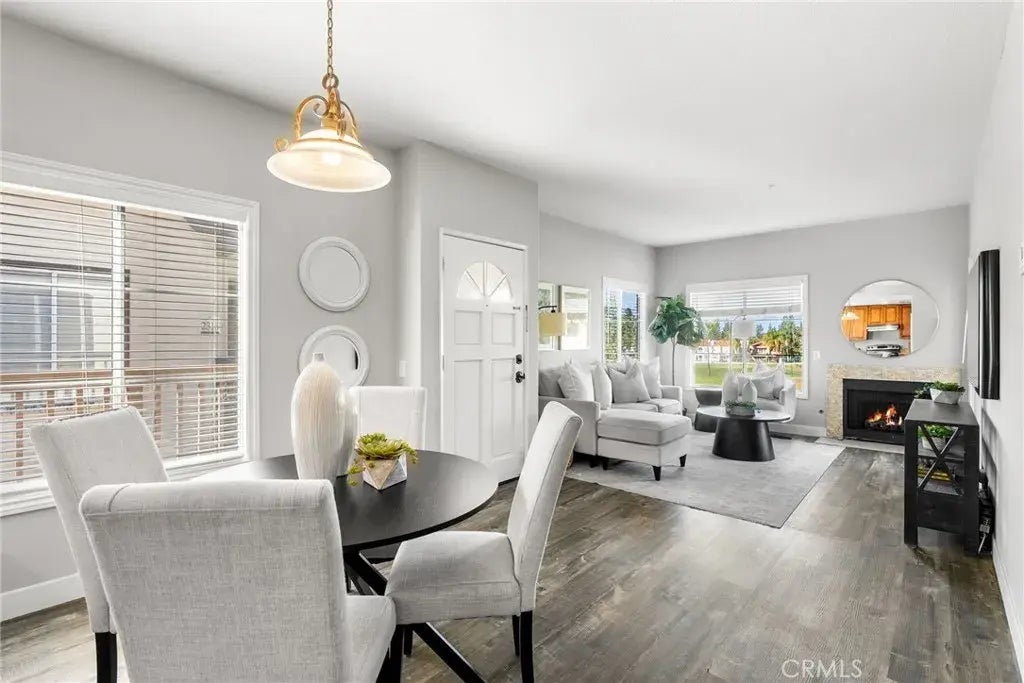 Welcome to Rancho Veracruz, the coveted golf course community! This third-level, one-bedroom residence boasts a serene location with a golf course view and a coveted one-car garage! You are also just steps away from the community pool and gym. The spacious living room features a cozy fireplace, while the dining area extends seamlessly into the kitchen with a convenient breakfast bar. Includes washer, dryer, refrigerator, and a new dishwasher! Upgraded throughout with engineered hardwood and carpet, updated kitchen counters and cabinets, and an updated bathroom including a tiled shower. The bedroom offers a walk-in closet with a custom California closet upgrade, and built-in cabinets near the bathroom provide ample storage for clothing, shoes, and linens. An in-unit laundry makes this property ideal. Entertaining is effortless with the open layout connecting the kitchen, living, and dining areas. Enjoy outdoor grilling on your private balcony, or take advantage of community amenities such as two sparkling pools with spas, an exercise center, and a clubhouse. Association dues cover water and trash. The unit has a one-car garage with room for storage The perfect blend of comfort and lifestyle at Rancho Veracruz. Don't miss out on this great opportunity!