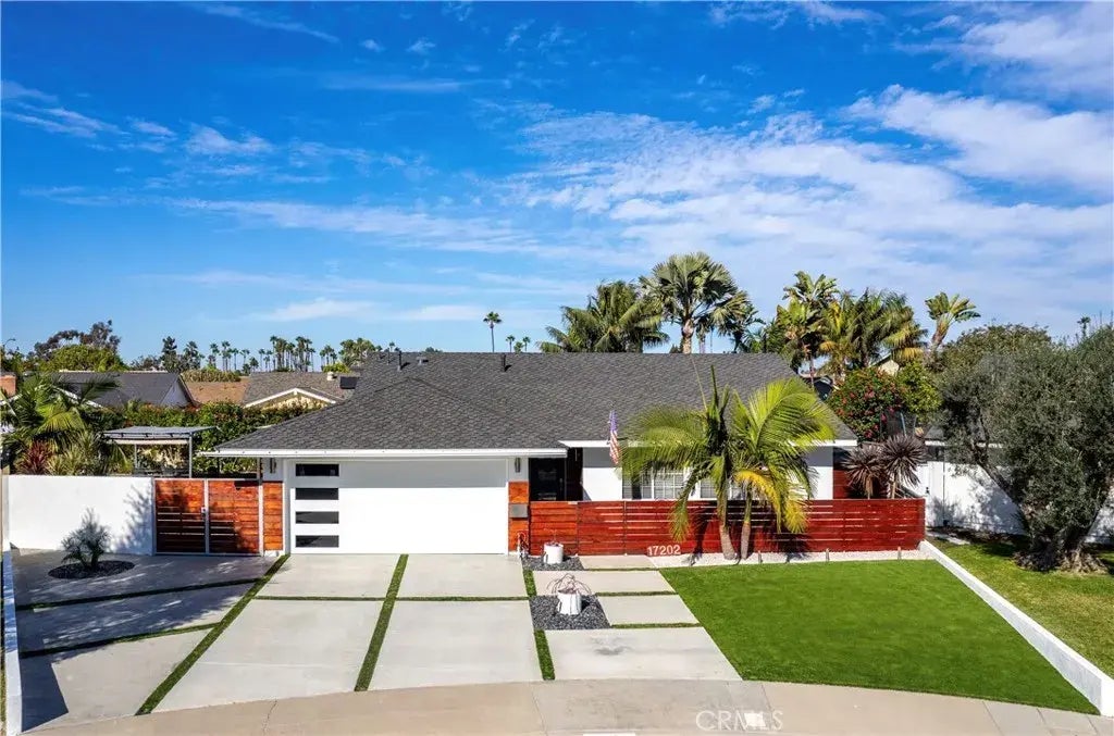 This immaculate, turnkey single-story home is perfectly located at the end of a cul-de-sac in the desirable Golden View neighborhood. Recently renovated, it features an open floor plan with vaulted ceilings and a bright, spacious kitchen complete with a large island, wine fridge, and stainless steel appliances. The custom fireplace adds warmth to the living room, while the main living areas offer stunning views of the lush, private backyard. The primary bedroom opens directly to this serene outdoor space. The front yard boasts a beautifully landscaped turf, a custom-designed driveway, and elegant lighting, creating a striking and welcoming first impression. In the backyard, enjoy a peaceful retreat with paver stones, mature plants, trees, and flowers for added privacy. A separate shed has been converted into a functional office, perfect for working from home or as an extra room. The large covered patio off the kitchen is ideal for entertaining. This home offers modern updates, including a newer roof, plumbing, electrical, electrical panel, water heater, HVAC system, and SO much more. The garage features sleek epoxy flooring, adding both style and functionality. The spacious lot also offers RV parking. All of this is just a stones throw from Central Park, wetlands, and the iconic Huntington Beach coastline.