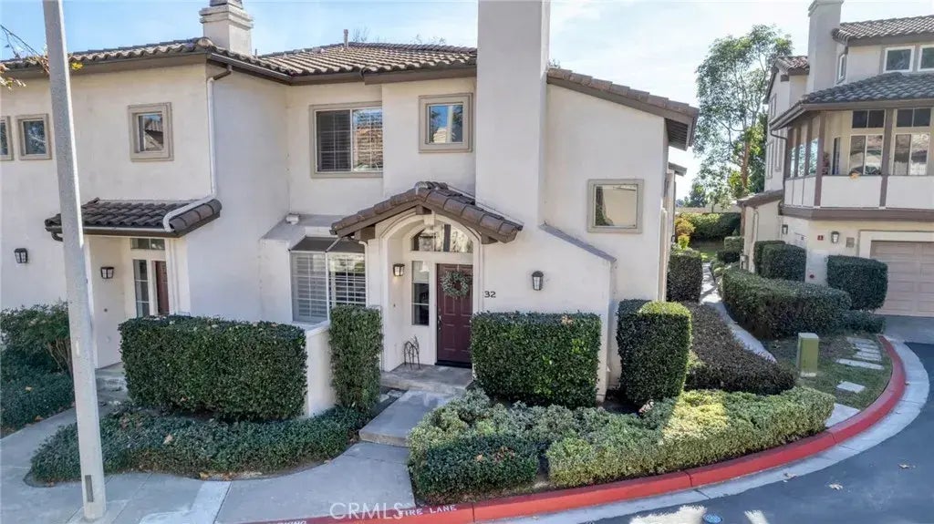 Welcome to this beautifully updated townhome, located in Melinda Heights area of Rancho Santa Margarita. This light-filled corner location with views of the surrounding hills and trees feels like a single-family residence. As you approach the home, youre greeted by a tranquil front courtyard featuring steppingstones that lead to a peaceful sitting areaperfect for enjoying a quiet moment. The back patio with space to garden overlooks lush greenery, making it an ideal spot for morning coffee, BBQs, or entertaining guests. Upon entering you are greeted with two-story ceilings and walls of windows that bring an abundance of natural light. The interior has been thoughtfully updated with new "white oak" luxury vinyl plank (LVP) flooring throughout, new quartz countertops and fresh interior paint. The kitchen features a gas range, a convenient counter height breakfast bar, recessed LED lighting, new kitchen faucet and pantry for ample storage. The spacious dining area accommodates all your guests and looks out at the front courtyard. The main level also offers a full bedroom and full bath with new white shaker vanity and quartz countertop and is ideal for guests or multi-generational living. The picturesque stairway, with its "white oak" LVP and crisp white risers, leads to the upper level with two generous primary suites, both offering ample closet space and their own bathrooms. One suite features a large walk-in closet, while the other offers dual vanities and two walls of closet space. Additional thoughtful touches throughout the home include newly installed 6" baseboards, shut