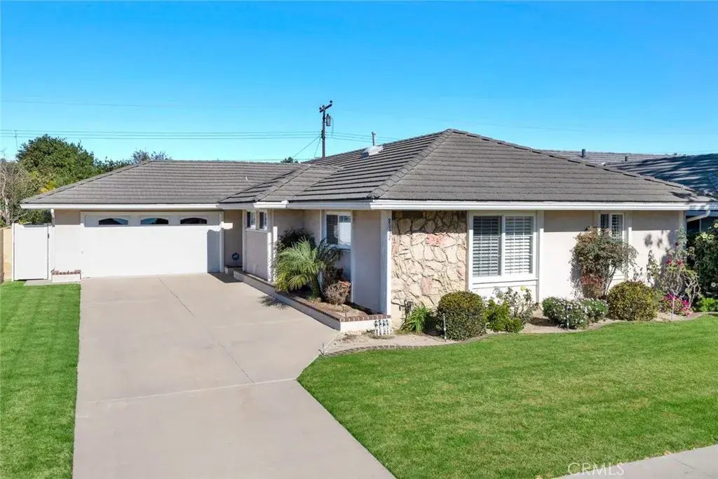Sometimes life delivers just when we are ready to receive a bountiful blessing. If this is your time, this lovely home is your answer to prayer; so look up, open your arms, and say thank you. Carefree days and moonlit nights are an everyday celebration with room to spare for every family member and guest in this meticulously maintained and expanded, single level haven in the heart of Fountain Valley. The curb appeal is enhanced by a lush, manicured lawn, and dual pane windows. Every turn offers a discovery that warrants a smile. Good memories are made of great meals and this kitchen delivers with abundant cabinets, breakfast bar, dining nook, a sky light and recessed lights. Gather grateful hearts over Sunday dinners in the formal dining room. The focal point of the living room is the fireplace, beautifully framed by elegant granite and a custom mantleperfect for cozying up, passing the popcorn, and enjoying a good movie. Here, you can also immerse yourself in music, literature, art, and entertainment, making it a versatile space for relaxation and inspiration. Display your memorabilia & collections in the expansive family room. Every queen deserves a royal lair in which to primp and prepare to meet her public. This spacious primary bedroom features an ensuite bath and a walk-in closet. Go barefoot and curl your toes in the new, soft plush carpet. Adding to the charm, beauty and panache are hallway central air conditioning, multiple sky lights, Roman shades, tankless water heater and new neutral paint throughout. Direct access from the kitchen to 2-car garage with side door