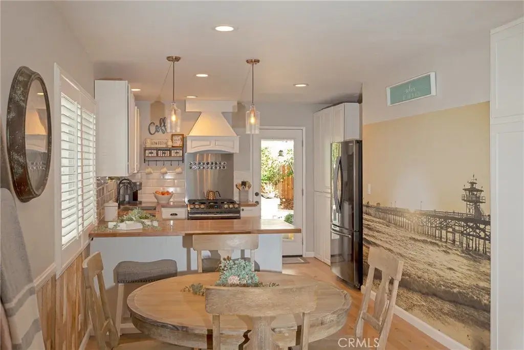 Welcome to your coastal haven! This enchanting beach cottage offers the perfect blend of relaxation and convenience, nestled just steps from the sand and surf. With its idyllic location and charming features, this property is your gateway to beachside bliss. With coastal-inspired decor, custom wood walls, and a cozy fireplace, the home exudes a welcoming, laid-back vibe. Recently remodeled, and ready to enjoy! Features include an open-plan living area with a sunlit, airy atmosphere, numerous windows enhance the space with natural light, while hardwood floors add warmth and character. Modern Amenities: The well-equipped kitchen boasts stainless steel appliances, butcher block countertops, and ample storage. Ready for family gatherings and entertainment! Three generously-sized bedrooms offer comfortable retreats, each with ample closet space. The expansive backyard is perfect for al fresco dining or lounging in the sun. An outdoor spa makes it easy to relax after a day at the beach. Located mere moments from all that San Clemente offers: sand, surf, shopping, and restaurants! Don't miss your chance to own this delightful beach cottage. Embrace the coastal lifestyle and make this dream cottage your reality today! Additional Bonus: Seller owned Solar covers current sellers electricity needs!