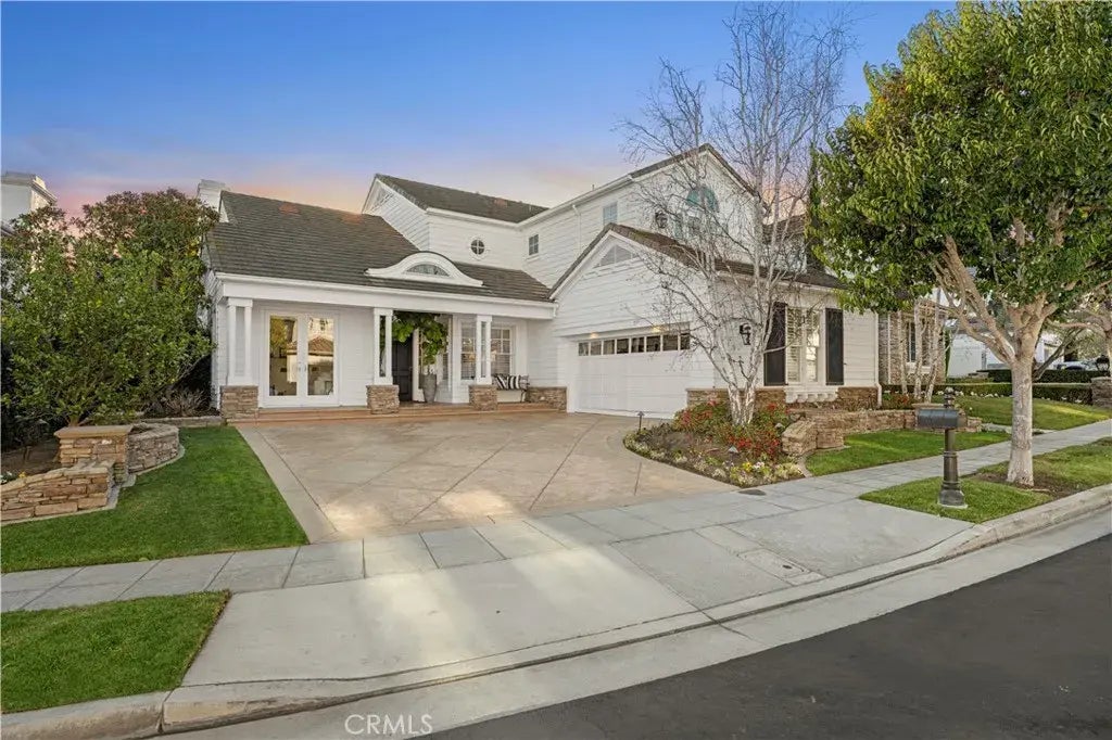 Situated within the prestigious guard-gated community of One Ford Road, 7 Jupiter Hills Drive is a stunning home that seamlessly blends timeless design with contemporary finishes. This immaculate residence offers 4 bedrooms, an office, and 4 bathrooms, all set on a spacious and private 8,036-square-foot lot located on a coveted cul-de-sac. The main floor features a formal living room with soaring ceilings and a sleek, elegant fireplace, a formal dining room with a coffered ceiling, and a well-appointed office with built-ins. The family room includes a large fireplace and flows effortlessly into the beautifully remodeled kitchen, which boasts a large pantry, top-of-the-line Wolf appliances, and a casual dining area overlooking the meticulously landscaped backyard. The backyard and patio provide a serene retreat with ample space for outdoor dining, relaxation, and entertaining, surrounded by meticulous landscaping that enhances the homes private and tranquil atmosphere. A highly desired main-level guest bedroom and en-suite full bathroom complete the first floor. Upstairs, the luxurious primary suite features high ceilings, a private balcony, a large walk-in closet, and a remodeled spa-like bathroom. Down the hall are two additional generously sized bedrooms and a full bathroom. Additional highlights include a two-car attached garage with epoxy flooring, French white oak hardwood flooring, and custom shutters throughout. Residents of One Ford Road enjoy an array of world-class amenities, including two Olympic-sized pools, a state-of-the-art fitness center, sport courts, putti