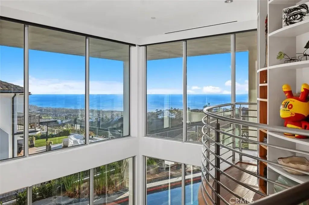Experience the epitome of modern living in this panoramic ocean view, architectural masterpiece. This stylish and luxurious home was designed and built by renowned architect Dale Naegle and Dupuis Design. The interior showcases a contemporary and flowing open floor plan. Exterior glass walls bathe every room in natural light and maximize the panoramic ocean, coastline and whitewater vistas. Western Silver Aluminum Windows and telescoping glass doors create a seamless indoor/outdoor transition. The main floor bedroom currently serving as an office, also enjoys ocean views looking out over a serene reflection pool. A central floating staircase with stainless steel rails and oak treads adds a striking architectural feature. The family room features a linear fireplace for cozy gatherings.The primary suite offers an open floor plan with an air tub, open curbless shower, steam room, and fitness area which opens to one of the panoramic ocean view decks. The Bulthaup kitchen is a chefs dream, featuring a central induction cooktop, custom butcher block island, and fully integrated Miele and Sub-Zero appliances. Marius Aurenti micro cement on the first floor and engineered oak on the second floor add to the home's refined aesthetic. The saltwater lap and reflection pools are adorned with Bisazza mosaic tiles. A spacious roof top deck with parapet provides easy access to your self-owned solar panels and AC equipment. Lutron smart technology controls lighting, lutron sun shades and surround sound. Security cameras and Rachio smart sprinklers provide additional convenience and safety. T