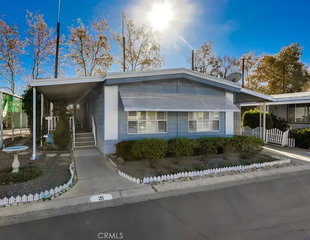 Welcome to 24921 Muirlands Blvd #31, Lake Forest, CA 92630! This delightful 2-bedroom, 2-bathroom manufactured home offers 1,444 sqft of well-designed living space, perfect for those seeking style, comfort, and convenience. Step onto the spacious covered front porch, ideal for outdoor seating and relaxation, and enter into a bright, open-concept living, kitchen, and dining area. The shiplap ceiling, custom wood shutters, and hardwood floors throughout create a warm and inviting atmosphere. Natural light fills the space, highlighting the recessed lighting and thoughtfully designed kitchen, complete with ample cabinet space, an eat-in island, and a bar area with built-in cabinetry and a ceiling fan. The master bedroom offers a serene retreat with dual closets, a ceiling fan, and an ensuite bathroom featuring a dual-corner vanity and a walk-in shower. The second bedroom, currently used as an office, opens through sliding glass doors to an enclosed sunroom, perfect for additional living or workspace. A second bathroom includes a single-sink vanity and a tub/shower combo. Practical features include a laundry room/mudroom with direct access to the carport, which is spacious enough to accommodate an RV. A second porch in the back connects to a walkway leading to the front, ensuring easy access and mobility. This home is located in a vibrant community that offers a large swimming pool, a recreation area with multiple grills and picnic tables, and a clubhouse for gatherings and events. Dont miss this opportunity to enjoy the perfect blend of charm, functionality, and community livin