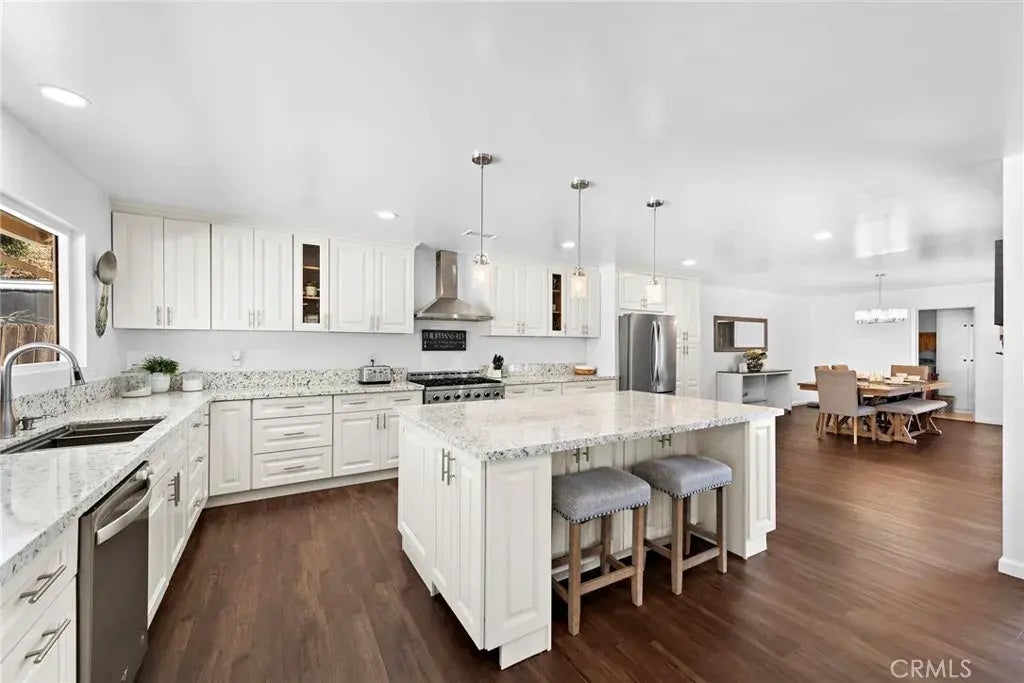 Gorgeous ONE-Story, Single-Family Home located on a Cul-De-Sac in the highly desirable Whittier Hadley Hills. This 4 bedroom, 2.5 bathroom was recently remodeled to the hilt. Open the elegant double doors to your spacious open concept sun-soaked home with beautiful luxury vinyl flooring throughout. This gem is the perfect gathering place with friends & family. The spacious living room is adorned with canned lighting and includes a beautiful white brick fireplace & large sliding glass doors to ensure maximum sunlight. Transition to a stunning kitchen with more canned lights and easy access to your family and dining rooms making for the perfect entertainment zone for all occasions. It doesnt get any better than this! The kitchen is a chiefs delight bursting with natural light, a huge island sets the stage highlighted with stunning accent pendants, 6 gas stove top & oven & matching hood, designer quartz counters, all newer custom cabinets w/slow close & designer hardware. The dining room is ideal for a large gathering of friends or dinner with the family. Whether the occasion is simple or special, you are set to impress! The remodeled Master Suite includes a large window for a sea of natural light, plenty of room for seating and a huge closet. The master Suite bathroom has TWO vanities and a beautiful, enlarged shower. Three more spacious rooms are located down the hall for maximum privacy and the last room can easily have a closet added or be used as an office for convenience. The spare bathroom includes a tub for the kids, guests, or your favorite pet. The bath is perfectly