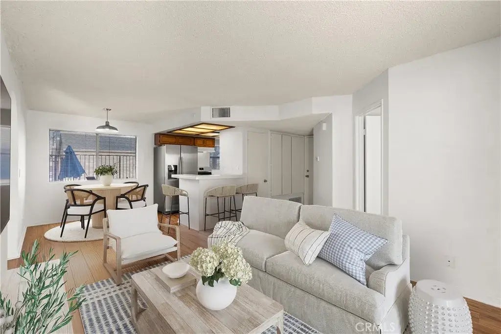 Discover this hidden gem in the heart of Garden Grovea charming 2-bedroom, 2-bathroom downstairs home located within a gated community. Perfectly suited for roommates or two adults, this property blends comfort and functionality with an elevated lifestyle. The home features laminate floors throughout, creating a clean and modern aesthetic. The kitchen is well-equipped with a gas range, dishwasher, and refrigerator, offering ample counter space, a pantry, and a window with a pool view. Enjoy casual meals at the breakfast bar or host dinners in the designated dining area. The spacious living room opens to a large patio, ideal for entertaining or relaxing outdoors. Both bedrooms are generously sized with walk-in closets, while the primary bedroom boasts an en-suite bathroom with a pedestal sink and walk-in shower. The second bathroom features a newer vanity and a full-size tub with a glass shower door. A convenient laundry closet includes a washer and dryer. Outside, the private patio is perfect for BBQs or hosting gatherings. Stay comfortable year-round with central AC, and take advantage of the detached 2-car garage with a storage loft located within the gated community. Additional amenities include a sparkling pool, spa, and guest parking. This property truly checks all the boxesdont miss your chance to call it home!