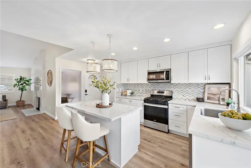 Welcome Home to this beautifully remodeled 2 bedroom +1 bathroom single story stunner located in the coveted and guard gated 55+ community of Casa Del Sol, Mission Viejo! Perched high above the rest showcasing front row sunset views and coastal breezes, this stunner has been newly renovated with exceptional craftsmanship. Light and bright and full of sunlight, enter into a wide open floor plan with brand new designer luxury vinyl flooring throughout. New Dual Pane windows frame the beautifully remodeled kitchen inclusive of custom white shaker cabinetry and quartz counters, ample storage and NEW stainless steel appliances, new sink, faucet, recessed lighting and beautiful pendants over the large kitchen island. Walk out to your back yard patio through NEW sliding doors to dine alfresco and enjoy forever views. The oversized living room showcases vaulted ceilings, plantation shutters and a cozy fireplace adorned with designer tile all the way to the ceiling. The extra wide hallways include ample built ins for more storage along with the entrances to the oversized master bedroom with walk in closet and secondary bedroom with upgraded mirrored sliding doors and plantation shutters. The completely remodeled bathroom includes an oversized walk in shower with beautiful golden hue porcelain slab upgrades. Additional Features include new PEX plumbing, NEW custom paint, Recessed lighting, NEW water heater, oversized tandom garage and custom tiled front patio. Casa Del Sol is a 55+ active community complete with pools, a health and fitness center and gym, library, craft room, billiar