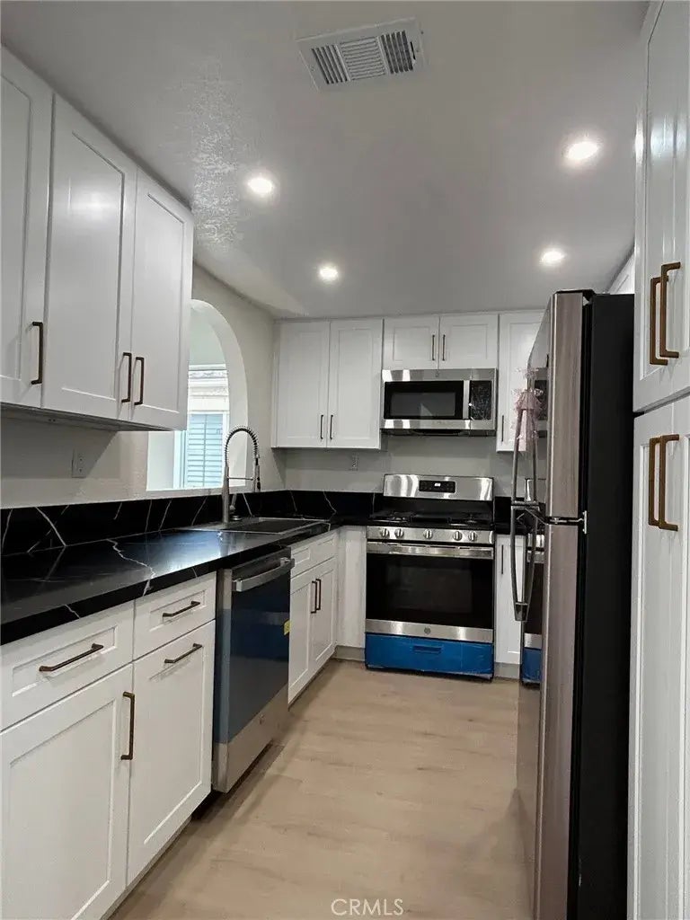 Welcome home to this stylishly REMODELED 2nd floor, 2 bed / 2 bath END-UNIT condo with large, 2 CAR DIRECT-ACCESS GARAGE below. Enjoy cooking in the NEW KITCHEN with quartz counters & ALL stainless appliances. The SPACIOUS Living room / Dining room offers lots of natural light & opens to a PRIVATE balcony. New LVP flooring throughout incl. in both bedrooms & UPDATED BATHS. Primary bedroom features en-suite bath & huge walk-in closet. Includes Washer & Dryer located in the roomy garage. Vista Del Flores condo community has an HOA pool & spa area & is ideally located near shopping, dining, entertainment & outdoor activities with easy access to I-5 & near-by toll roads. Apply via RentSpree: https://apply.link/RLAgkbA