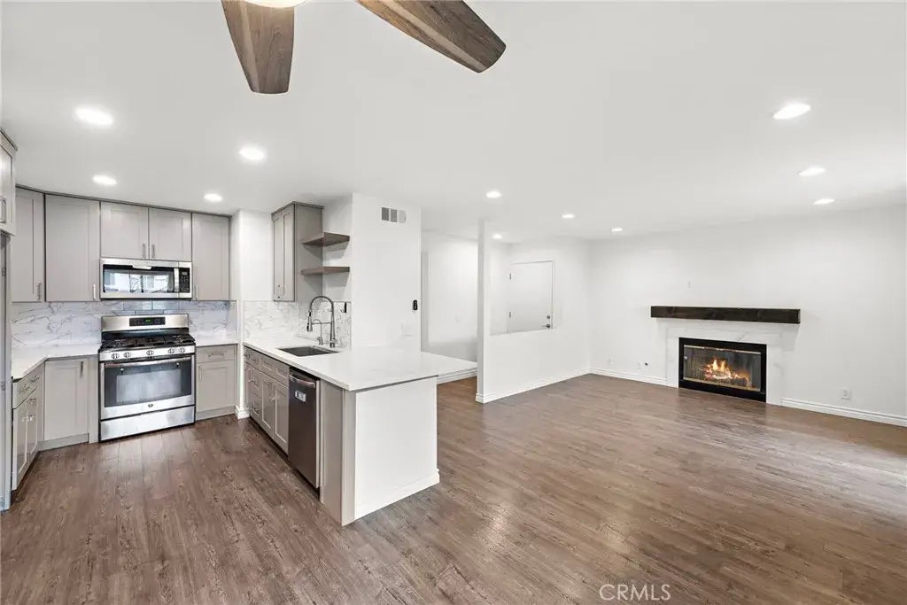 This is the turn-key home you have been waiting for! Situated behind the gates of the Villorio community, this newly upgraded home is just down the street from the adorable shops and eateries of Foothill Ranch. As well, it is centrally located between the 5 freeway and the Eastern Transportation Corridor for an easy commute! This end-unit condo has been remodeled from top to bottom. Just some of the upgrades include: new laminate flooring; quartz countertops and modern tile throughout the home; a fresh coat of paint; recessed lighting; cabinets and hardware; ceiling fans and more! This condo is perfectly situated in the community with no other units directly in front of you. Instead, you have a wide open view of the greenbelt and your beautiful community. This home won't last!