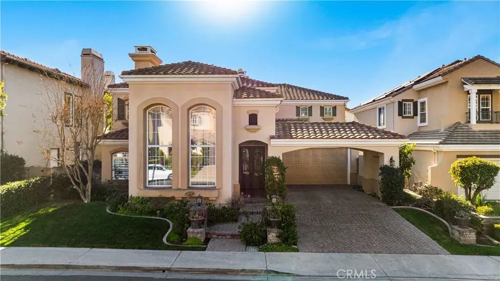 Welcome to this impeccably designed home that combines luxury, comfort, and style. The property boasts outstanding curb appeal with a brick driveway, an inviting walkway, beautifully landscaped grounds, framed by elongated windows, and a charming arched porte cochere. Step inside to be captivated by the grandeur of high tray ceilings, a graceful white curved staircase, and exquisite chandeliers. The spacious family room with a cozy fireplace flows seamlessly into a sophisticated home office. This versatile space also offers a full bathroom and walk-in closet. The grand entryway leads to the elegant formal dining room with custom raised panels and trim, and an open-concept kitchen and living room area perfect for entertaining. The chefs kitchen is a true standout, offering expansive granite countertops, a walk-in pantry, soft-close drawers in white and mocha, a six-burner stainless steel stove, wine fridge, glass-front cabinetry with under-cabinet lighting, double ovens, convection oven with grill, and a full tile backsplash. Upstairs, discover four spacious bedrooms, including a magnificent master suite. This private retreat offers dual walk-in closets with custom organizational features and natural light. The master bath is an oasis with dual vanities, a linen closet, a spa tub, and a walk-in shower. Additional highlights include a 23-panel solar system (paid off), ensuring energy efficiency, and a tranquil backyard with total privacy. Enjoy outdoor living with a BBQ, fireplace, pool, and spa with a fountain, and mature trees providing the perfect relaxing ambiance. This h