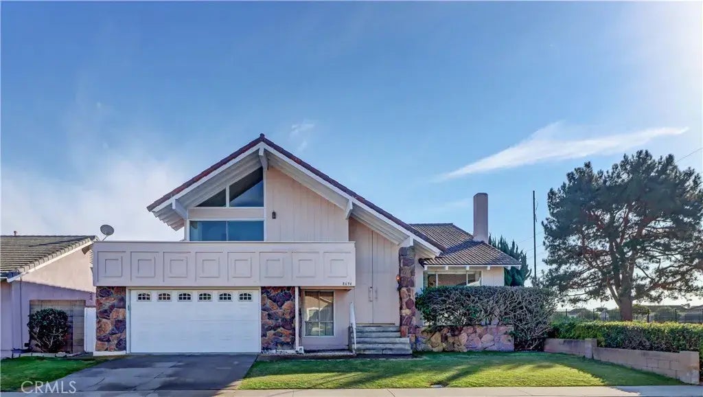Great opportunity for this highly sought after 5 bedroom, 3 bath Granada model home. Double-door entry leads to the unique vaulted ceilings on 2 levels, including the expansive living room with fireplace. It then moves seamlessly to the formal dining room, just off the large kitchen and family room with a wall-of-windows overlooking the rear yard. One bedroom and bath are also conveniently located on the main floor, perfect for guests, mom & dad or a home office. The indoor laundry is also on the main floor. Upstairs are 4 bedrooms, including a huge Primary Suite. This suite has volume ceilings, a walk-in closet and slider to a front balcony. The large, soothing rear yard has a covered patio, swimming pool and spa plus a grass area for the kids or pets. This home is a great opportunity to remodel, choose your own interior finishes and truly make it your own. Near the park, it is walking distance-close to the award winning Courreges Elementary School, Association clubhouse with pool and active swim team and activities for the entire family.
