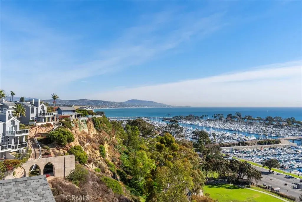 Rare opportunity on the bluff of historic Dana Point Harbor. This stunning property offers an exquisitely modern and luxurious living experience with panoramic harbor and coastline views that will transport you to a villa on the Amalfi Coast. Spanning nearly 2800 square feet, the home features 2 bedrooms, a den, and 2.5 bathrooms. The living room, kitchen, dining area, and primary bedroom all offer stunning ocean views, while the modern design with incredibly tall ceilings features a clean, white, and gray aesthetic. The recently remodeled European-style kitchen boasts top of the line finishes with Taj Mahal leathered quartzite countertops, a Bosch gas cooktop and Bosch double oven, warming drawer with slow cooker feature, Sub-Zero refrigerator, in addition to separate refrigerator and freezer drawers for entertaining. The light and bright kitchen is complimented with tall ceilings and skylights for stunning natural light. On the upper level, in addition to a powder bath, youll find a bedroom with ensuite bathroom recently remodeled that includes Woodbridge toilet system, frameless edge illuminating shower glass and auto sensing water stream start/stop. Take the McKinley pneumatic elevator down to the main level to find the gorgeous primary retreat. The primary bedroom and bathroom have spa-like amenities that can rival a Four Seasons retreat. Equipped with a soaking tub complimented with a Helifire 360 vertical gas fireplace, a 2-person red-light therapy sauna with television, and breathtaking ocean views. Of course, the elevated space calls for custom cabinetry, larger du