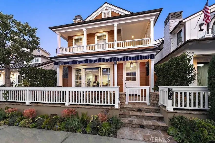Discover coastal living at its finest with this exquisite property at 308 Collins Ave, Newport Beach, CA. Nestled on the sunny side of one of Balboa Island's widest streets, this captivating Cape Cod-style home by architect Ian Harrison embodies the classic beach cottage aesthetic with timeless sophistication. The 3-bedroom, 3-bathroom residence spans 2,494 sqft and offers a quintessential Balboa Island living experience. Step inside to find a freshly painted interior with new flooring. The open concept living room, complete with a cozy fireplace, provides the perfect setting to unwind after a day of island adventures. French doors open to the front patio, ideal for savoring your morning coffee or evening wine while enjoying the gentle coastal breezes. The charming kitchen boasts top-of-the-line stainless steel appliances, an oversized island with breakfast bar, and a walk-in pantry for ample storage. Ascend to the second level to find a wraparound porch, bonus recreational area, dual primary suites, spacious secondary bedroom and gorgeously appointed bathrooms. The home's crowning jewel is the third-story study, which opens onto a roof-top deck offering breathtaking peek-a-boo bay views the perfect vantage point for watching Balboa Island's famous fireworks displays and boat parade. With a 2-car attached garage featuring epoxy flooring, this home offers both style and practicality. Living on Balboa Island is a unique experience, offering a tight-knit community feel with all the perks of a permanent vacation. Enjoy leisurely strolls along the waterfront, browse charming lo