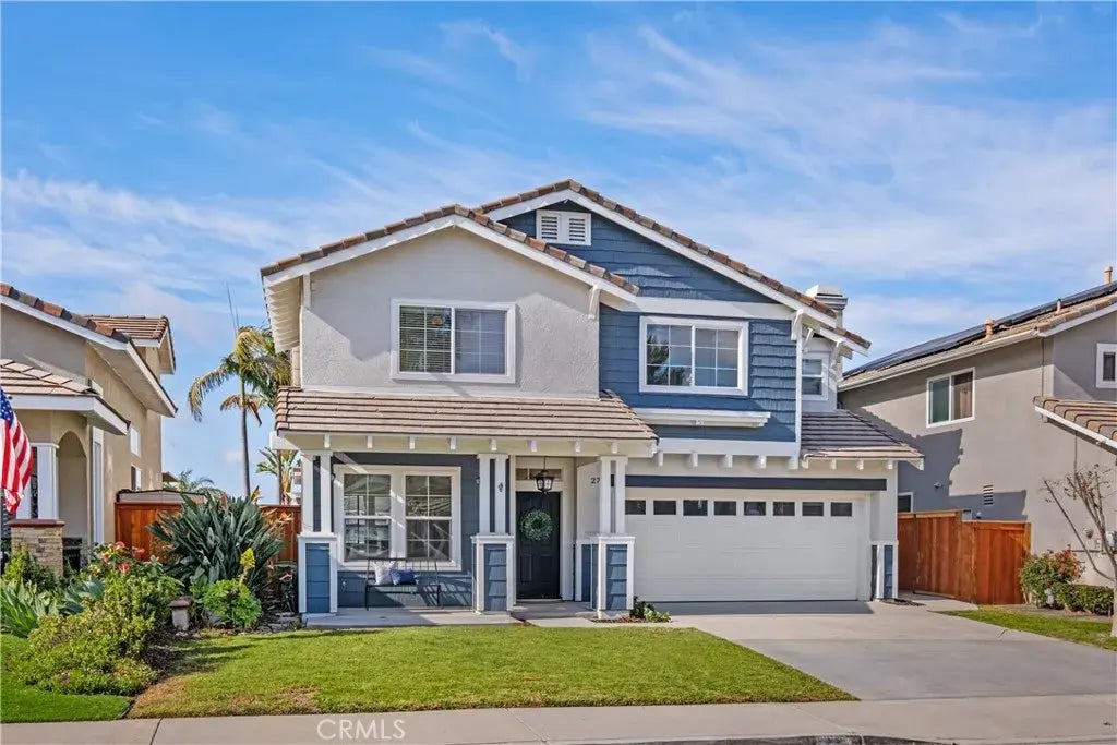 Your wait is finally over! This 5 bedroom, 3.5 bathroom NEWLY REMODELED CARMEL community home features SUNSET VIEWS and a peaceful CUL DE SAC location, all less than 9 miles from Laguna Main Beach and the Irvine Spectrum! Take a walk or bike ride from your covered porch to Canyon View Park or the Top of the World Park for amazing ocean views! As you enter this turnkey home, you are greeted by 9-foot ceilings and gorgeous luxury vinyl plank flooring throughout. The new first floor in-law suite with a full bath is perfect for any multi-generational family or for a downstairs private guest suite. The view draws you down the hall into the great room, where you find a large family room with a newly restored marble fireplace, newer windows and an ample flex space which can be used as an office, drop zone, or kids homework station. As an extra bonus, across from the flex space is a half bath featuring a stylish shiplap back wall. Seamlessly connected with the family room is the dining area and a chefs dream kitchen, boasting new white shaker cabinets, gorgeous quartz countertops, a 6-burner premium range, new appliances, and so much more! The extra-large sliding glass door highlights gorgeous views of Laguna Canyon and sunsets for a true outdoor resort-style living experience. Relax under the lattice-covered patio or tend to your herb garden, all surrounded by new fencing. The upstairs primary suite offers vaulted ceilings, plantation shutters and an enlarged walk-in closet with built-ins. The spa-like in-suite bathroom includes an oversized shower, new white shaker cabinets with