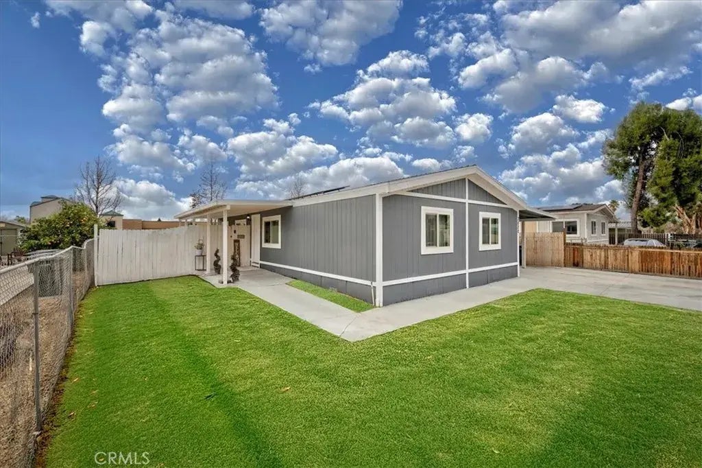 Beautiful Turn-Key Manufactured Home! sitting on a generous 6,098 sq. ft. lot and offers a perfect blend of comfort and functionality. Boasting 3 spacious bedrooms and 2 full bathrooms, both equipped with bathtubs, this home is move-in ready! Inside, you'll find: A bright dining area, and spacious living room with high ceilings. A well-appointed kitchen featuring a range, dishwasher, recessed lighting, and ample cabinet space. A convenient laundry room and a master bedroom en suite for added privacy and comfort. The exterior is just as impressive, with: RV parking and a covered patio, ideal for outdoor relaxation. A large backyard with a storage shed and plenty of space for a playground or garden. A secure brick wall fence, complemented by chain link and wood side fences. Bonus: Save on electricity with the included solar panel system, making this home energy-efficient and cost-effective. This is a rare opportunity to own a turnkey property with space, style, and savings. Don't miss outschedule a showing today!