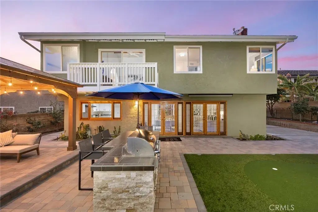 Welcome Home! Enjoy this beautifully upgraded gem located in one of the most desirable neighborhoods of Laguna Hills! This turnkey delight boasts a new roof (2020), solar, and golf putting green. This fabulous home has been E-piped and comes equipped with endless upgrades. The interior (2025) and exterior (2020) of the house has been re-painted and new rain gutters were installed in (2020). This wonderful two-story home includes 4 bedrooms upstairs, one of which is a large bonus-room with a closet. Two full bathrooms upstairs, and a bedroom/office/den downstairs, next to a half bathroom. Enter through beautiful solid oak double doorway to enjoy every breathtaking view from the room of your choice. The 3-car garage has a direct access entrance too. Either way, youll enter into the grand ceiling foyer to be greeted by the custom wooden spiral staircase w/beautiful pendant lighting. Make your way to the upgraded kitchen that includes granite counter tops and backsplash, a GE dual oven, recessed lighting, custom hood, HUGE walk-in pantry, upper & lower cabinets, and a large oak window above the kitchen sink. Cozy up in the living room, by the fireplace, or grab a book from the built-in bookcase/shelves and enjoy life! When youre ready for some fresh air, step out of the triple pane French doors w/beveled glass (which provide a light & bright atmosphere inside) and appreciate the backyard where you can sit in the new (2022) gazebo or practice your golf skills at the putting green (2022). Back inside, head upstairs to the double door primary suite to enjoy a hot shower in the hig