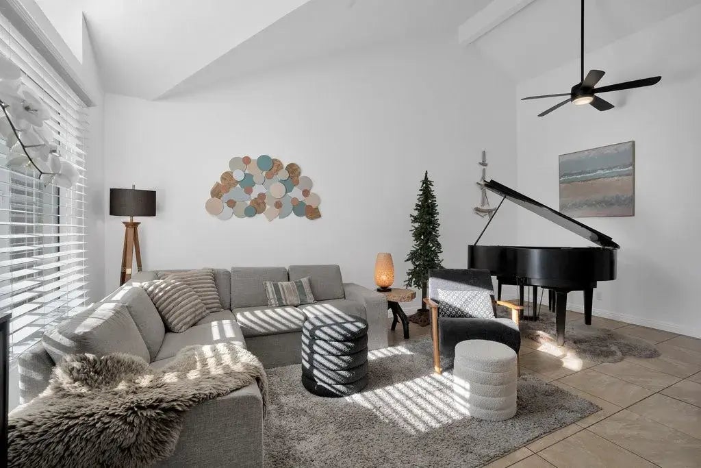 Welcome to this beautiful single-story San Jacinto model condo, offering 850 square feet of thoughtfully designed living space in the exclusive 55+ Sun Lakes Country Club community. This charming home features 2 bedrooms, 2 bathrooms, and a 2-car attached garage with space for a golf cart. Inside, youll find modern upgrades including freshly painted walls, popcorn ceilings removed, custom ceiling fans, and elegant 20 Italian tile flooring throughout. The stylish kitchen boasts white wood cabinetry, marble-swirled granite countertops with a matching backsplash, recessed lighting, and brand-new GE appliances. The spacious living and dining areas create a bright and inviting atmosphere, while the primary suite offers a large walk-in closet and an en-suite bathroom with updated fixtures, custom lighting, and a newly glazed shower/tub. The newly remodeled guest bathroom features new hardware, a low-flow toilet, and a refreshed shower/tub. Step outside to a low-maintenance backyard with stunning mountain views and no neighbors behind, perfect for enjoying your morning coffee under the Aluma wood patio cover. Additional highlights include smart home technology with a Nest thermostat and Ring doorbell, a newer HVAC system with updated ducting, a newer water heater, and a washer and dryer conveniently located in the garage. Sun Lakes Country Club offers unparalleled amenities, including two 18-hole golf courses with a pro shop, three clubhouses, two restaurants, a bar/lounge, saltwater swimming pools, Jacuzzis, tennis courts, pickleball, bocce courts, three fitness centers, and over