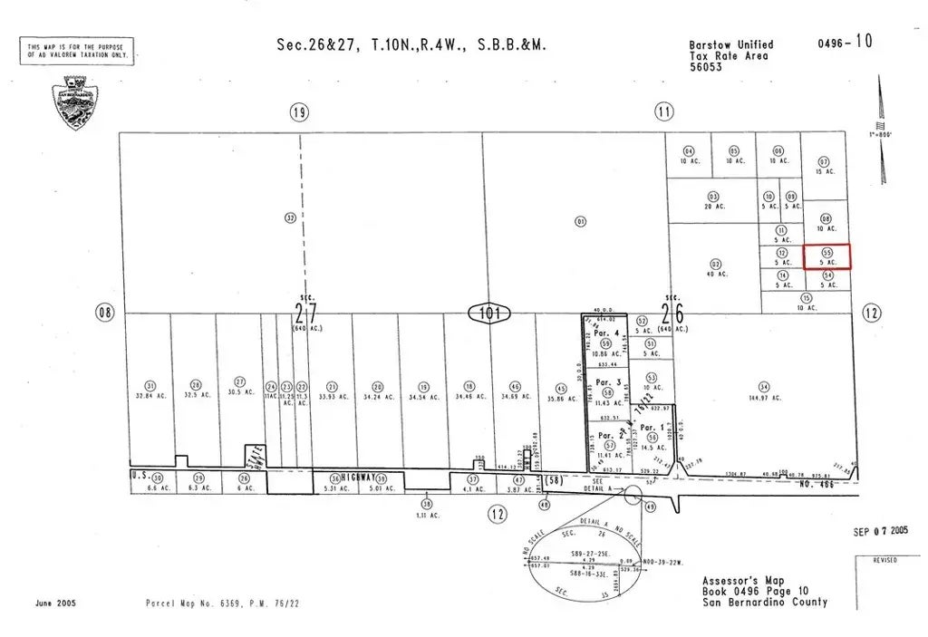 Discover this expansive 5-acre parcel (664' x 334') located just north of CA SR-58 near Wagner Road, west of Hinkley. Zoned RC (Resource Conservation), this property offers endless possibilities for off-grid living, recreation, or investment. Enjoy breathtaking desert views and wide-open spaces while still being within reach of Hinkley and Barstow. The Hawes Auxilary Airfield historical landmark and Desert Lighthouse cultural landmark are nearby. Legal access may require further verification. Dont miss this opportunity to own a piece of the High Desert! APN: 0496-101-55, San Bernardino County. Approximate NW corner coordinates: 34.932046, -117.261355; NE: 34.932020, -117.259135; SW: 34.931127, -117.261352; SE: 34.931099, -117.259133. Nearest neighbor's address: 19654 CA-58, Hinkley, CA 92347.