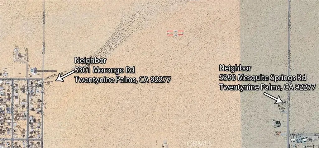 Embrace the tranquility of the desert with this .625-acre (27,225 SF) parcel, offering breathtaking panoramic views and the perfect escape from city life. Whether youre looking for a private retreat, an off-grid adventure spot, or an investment opportunity, this property provides endless possibilities. Located in the 29 Palms area, this land offers a peaceful setting surrounded by the beauty of the natural landscape. Nearby attractions include Joshua Tree National Park and all that 29 Palms has to offer, making it an ideal location for those who love the outdoors. This parcel, APN: 0619-181-03-0000, San Bernardino County, can also be purchased with the adjacent parcel, APN: 0619-181-10-0000, for a combined area of 1.25 acre, or 54,450 SF. If both are purchased in a single escrow, the seller will pay for all closing costs. Please note that legal access may require further verification. Buyers are encouraged to conduct their own due diligence to confirm road access and utility availability. Please go direct by using neighbor's address: 5390 Mesquite Springs Rd, Twentynine Palms, CA 92277 or 5301 Morongo Rd, Twentynine Palms, CA 92277. Approximate corner coordinates NW: 34.159819, -116.080508; NE: 34.159833, -116.079414, SW: 34.159588, -116.080508; SE: 34.159605, -116.079411.