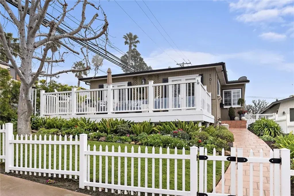 Charming beach cottage in popular Southwest San Clemente! Experience the ultimate coastal lifestyle living within walking distance to the sun, sand, and surf of T-Street Beach, the San Clemente Beach Trail, and the San Clemente Pier! Situated on a spacious 5,172 sq ft lot offering a lovely backyard and patio designed as a tranquil escape with soothing ocean breezes to entertain, garden, or simply relax. This 3 bedroom, 2 bath single level residence is an effortless retreat with no interior steps. A light and bright open floor plan creates an inviting atmosphere accented with crown molding, plantation shutters, French doors, and more. The functional kitchen offers granite counters, counter seating, a garden window filling the space with natural light, and access to the backyard making outdoor dining seamless. Out front, a quaint deck overlooks a beautifully landscaped front yard creating excellent curb appeal and a delightful first impression. Two car detached garage included. Prime location, timeless appeal, and walking distance to the beach could all be yours in this slice of paradise!