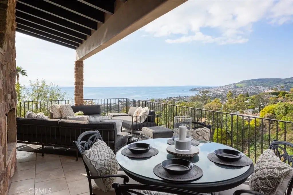 Discover the epitome of Laguna Beach living at 703 Gainsborough Pl, a captivating residence nestled on a serene cul-de-sac. Extremely private, this home is an ideal retreat for those seeking tranquility. One of the most unique aspects of this property is its proximity to the beach. Bring a book and blanket and take a leisurely walk to Woods Cove, one of the prettiest beaches in Laguna. This home offers an easy, pleasant stroll to the shoreline. Start your mornings like a localgrab your coffee and enjoy a beach walk. Spanning 3,441 square feet of meticulously remodeled living space in 2022, this home effortlessly blends old-world charm with modern luxury. Boasting 5 bedrooms and 3.5 baths, the home offers ample space for relaxation and entertainment. The custom kitchen and baths feature new appliances, harmoniously paired with hardwoods and plush carpeting throughout. Enjoy the warmth of three fireplaces and breathtaking ocean views visible from every room. Entertain with ease on the expansive terrace, where French doors open to create a seamless indoor-outdoor flow. Whether it's al fresco dining or morning breakfasts on the grill, the terrace is the perfect setting. With a Sonos music system filling the air and Fleetwood windows bathing the interiors in natural light, the ambiance is always set for memorable gatherings. This turn-key, designer-furnished home is move-in ready, with the option to purchase furnishings. The home's layout is thoughtfully designed for guests, offering en-suite baths, a gym, and ample privacy across its three levels. Additional highlights include