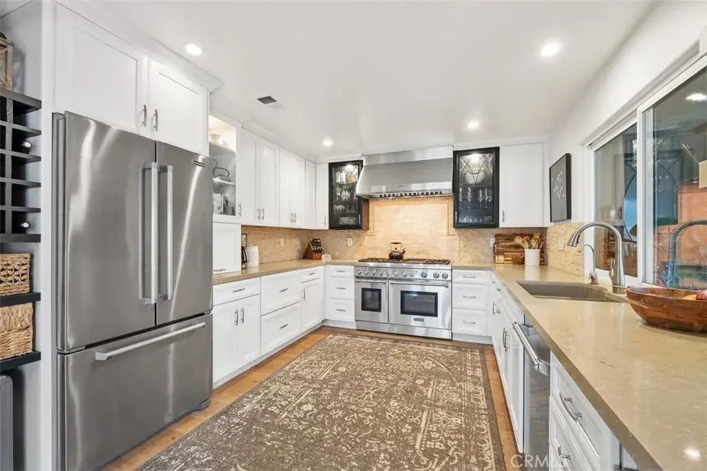 Welcome to 32142 Via Barrida, a beautifully updated, single-level home nestled in the desirable 55+ San Juan East community. Offering 3 spacious bedrooms, 2 luxurious bathrooms, and a wealth of premium upgrades, this home perfectly blends comfort and style. The open floor plan seamlessly integrates the kitchen, dining, and living areas, creating an ideal space for both everyday living and entertaining. Stunning wire-brushed light oak flooring flows throughout, enhancing the warm and inviting atmosphere. The chefs kitchen is a true standout, featuring sleek quartz countertops, an 8-burner gas range with a griddle, all Thermador appliances, a wine fridge, reverse osmosis, and ample storage. The living room is anchored by a custom stone fireplace, adding a touch of elegance and coziness to the space. The primary suite is spacious and offers a custom-built walk-in closet and an en-suite bathroom with a luxurious steam shower and upgraded vanity. The third bedroom is both versatile and spacious, currently used as an office, and includes a gorgeous sliding barn door for added character. Step outside to the private patio, designed for year-round enjoyment. Equipped with built-in heaters and a bar area wired for an exterior TV, this space is perfect for both relaxing and entertaining. Additional features include a newer AC unit and water heater, upgraded windows, and a two-car garage with storage. Located in a well-maintained community with access to a clubhouse, golf course, and pool, this home offers an exceptional living experience.