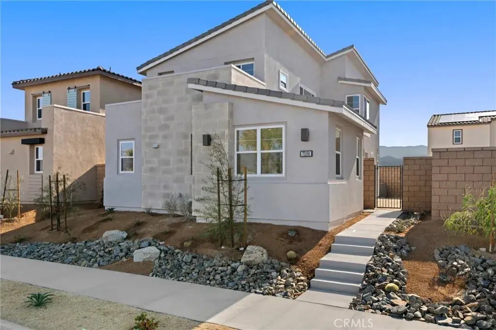 Experience upscale living at Alara at University Park by Toll Brothers with this pristine, never-before-occupied single-family home available for lease in Palm Desert. Featuring modern design and architectural elegance, this home offers 4 bedrooms, including a versatile flex room, 2.5 bathrooms, and 2,004 sq. ft. of living space on a 3,585 sq. ft. lot. Key highlights include a 2-car garage, a backyard landscape to be completed by the owner, and fully paid-off solar panels to keep energy costs low. Upstairs, you'll find the primary suite with a spacious walk-in closet, two additional bedrooms, a flexible loft area that can serve as an office, and a conveniently located laundry area. The homes stunning Spanish contemporary and transitional exterior blends seamlessly with its open, inviting interior layout, set against the serene backdrop of Palm Desert. Residents will enjoy exclusive access to The Grove, a premier community amenity center featuring a clubhouse, multiple pools, including a lap pool and resort-style pool with spas, fire pits, an event lawn, pickleball courts, and a shaded playground. Perfectly located in Palm Desert's desirable climate, this area is ideal for year-round outdoor activities like hiking, biking, and golfing. Explore nearby attractions such as the San Jacinto Mountains, world-class PGA golf courses, high-end shopping, and easy access to Downtown Palm Springs and Palm Springs International Airport. Dont miss the chance to lease this exceptional home in a remarkable community!