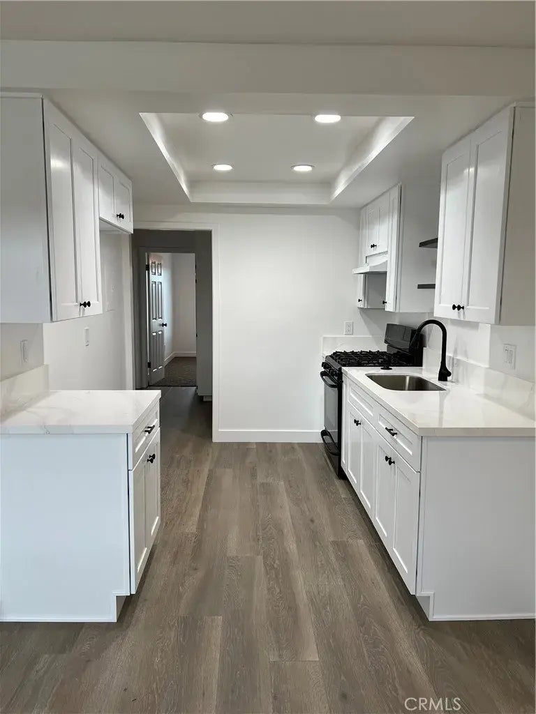 Charming two-bedroom, one-bathroom condo located in the gated community of Bristol Place. Interior of the property has been completely upgraded and painted. Upgrades include new luxury laminate flooring, carpet, baseboards, windows, ceiling fans with remotes, blinds, recessed lighting, and all new fixtures, plugs & hardware throughout. The Kitchen features new white shaker cabinets with soft close doors and drawers, quartz countertops, gas range & hood with light, stainless steel sink, garbage disposal, and decorative shelves. The Bathroom has been upgraded with quartz countertops, a deep soaking tub, a new vanity with soft close doors and drawers, shower fixtures, a single flush toilet, lighting, and a medicine cabinet. Both Bedrooms have new carpet and closet doors. HOA offers a community pool, laundry room, and outdoor cooking area with picnic tables.
