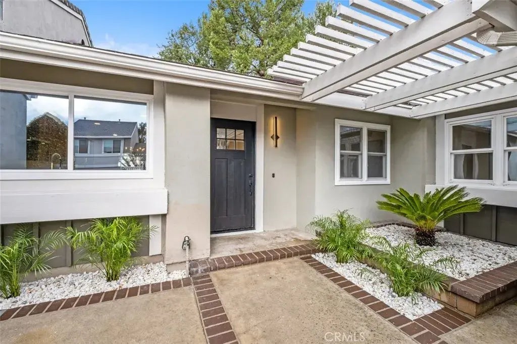 Stunning Fully Renovated Single-Level Home in Prime Irvine Location! Nestled on a desirable corner lot in a cul-de-sac next to a greenbelt and tennis courts, this beautifully reimagined 3-bedroom, 2-bathroom home offers modern living at its finest. Thoughtfully renovated throughout, it features an open-concept redesigned kitchen with a breakfast island/bar, quartz countertops, custom cabinetry, a built-in beverage refrigerator, and commercial-grade stainless steel appliances. The spacious living area with vaulted ceilings boasts new luxury vinyl flooring, recessed lighting, and fresh interior paint throughout. Sliding glass doors off the living room create a seamless indoor-outdoor living experience, perfect for entertaining. The home is filled with natural light and features energy-efficient double-pane windows. Both bathrooms have been elegantly upgraded with new showers, quartz vanities, and designer finishes. The home also includes a new water heater and a remodeled porcelain fireplace. Outdoor spaces are enhanced with new lighting and landscaping. The front gated courtyard with a covered entryway, lush landscaping, and brick patio create a welcoming exterior, while the newly fenced backyard with a refinished wood patio deck and charming brick fireplace offers a serene view of the greenbelt. The attached 2-car garage offers ample storage and updated finishes. There is also a driveway for additional parking, which is unique to this property. A newly serviced roof with a 5-year warranty ensures your peace of mind for years to come. Located in a sought-after community with