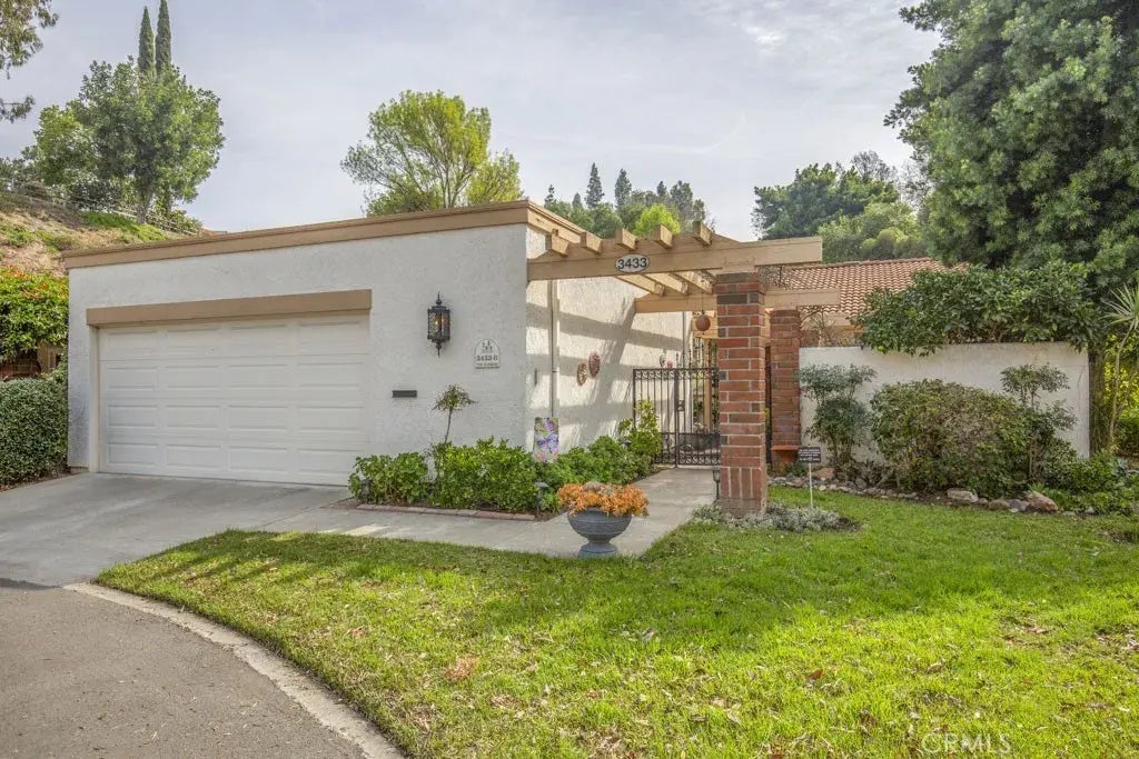 Popular three-bedroom, two-bath, single-level end-unit ANDALUZ residence with over 1500 sq. ft. in the Laguna Woods senior community. With excellent curb appeal, this home is situated at the end of a quiet cul-de-sac far from busy roads and noisy highways. Beyond a wrought iron gate, the attractively landscaped private front courtyard is the perfect location for outdoor entertaining, dining and relaxing. The enormous living room features an electric fireplace and easily accommodates various configurations of your large furnishings. The kitchen window looks out onto the lovely front courtyard. The primary bedroom suite has ample closet storage with mirrored doors and direct access to the rear patio. The primary bathroom features dual sinks and a shower while the guest bathroom has a tub/shower combo. One of the guest bedrooms has been enlarged by approximately 150 sq. ft. to create a versatile expanded space that could serve as a home office, arts and crafts studio or exercise room. Amenities include dual-pane windows and a brand-new water heater. The open rear patio looks onto an attractive large lawn and can be accessed via glass sliders in both the living room and the primary bedroom. The oversized two-car garage holds the washer/dryer and has additional storage cabinets. This residence has mostly original features but has been very well maintained. Move right in or update with your personalized remodeling ideas. Do not miss!