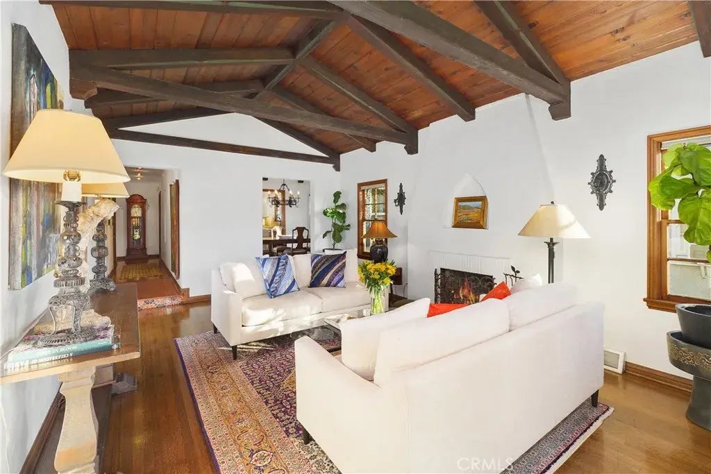 PRICE ADJUSTMENT! A captivating Spanish charmer in the heart of historic California Heights! This exceptional home is a rare find, the type buyers eagerly wait years to see hit the market. The front yard offers a charming brick-paved patio, ideal for entertaining, complete with a serene wall fountain and lush, well-manicured planting beds. Step inside through a quaint enclosed porch adorned with a beamed ceiling and vibrant Mexican tile flooring. The sunken living room impresses with its soaring vaulted wood-beamed ceiling and a stately wood-burning fireplace, creating a cozy yet grand ambiance. The formal dining room is equally enchanting, featuring an original painted beamed ceiling and an entire wall of built-in display shelves for added character. The kitchen, both functional and stylish, includes a walk-in pantry and stainless steel appliances. The utility room provides excellent practicality with a refrigerator, washer, dryer, laundry sink, and abundant storage options. A sunny breakfast room adds a delightful touch with its original built-in shelving and cabinetry. The expanded primary suite is a private sanctuary, complete with a remodeled en-suite bathroom, a walk-in closet, and French doors that open to a rear deck perfect for entertaining. The remodeled hall bathroom exudes classic elegance with its white subway tile and pedestal sink. The 3rd bedroom currently utilized as a den, opens onto the front patio through French doors. All plumbing, electrical systems, and the water heater have been updated. The roof was repaired and updated four years ago. The home feat