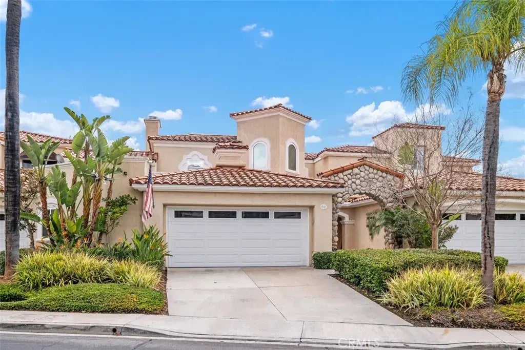 This immaculate home features that rare downstairs master bedroom that you have been waiting for! The spacious downstairs master suite has soaring ceilings, built-ins, and direct access to the patio. The bathroom has been remodeled with an oversize jetted tub, separate shower, dual vanities with added cabinet and walk-in closet with organizers. The kitchen features maple cabinets with soft touch close, pantry, and added custom built-ins in, breakfast nook with French door access to rear patio, granite counters and stainless steel appliances including a new dishwasher & stove. The living room features a fireplace, built-in storage and a custom wine bar area. The upstairs bedroom has a stunning view of the golf course as does the bonus room that includes a walk-out deck. The remodeled bathroom features a marble counter and shower. The upstairs office is open and airy with beautiful views of the nearby mountains. A newer AC/HVAC for the entire house, plus an additional brand new mini split for the upstairs. All new windows, sliders & French doors throughout the home. There's a tank-less water heater, fans in all of the rooms, crown molding throughout, hardwood floors and a huge amount of storage in the garage. Relax on one of the largest private patios in the complex overlooking the green golf course and a majestic view of the Saddleback mountains.