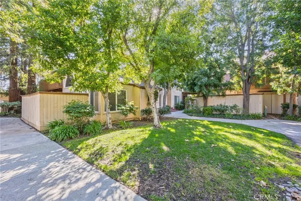 Tucked away in the heart of Sequoia Village, this beautifully updated lower-level two-bedroom condo offers a peaceful, park-like atmosphere. Inside you'll find a spacious living room with soaring vaulted ceilings. The remodeled kitchen features plenty of cabinet space, sleek countertops, a dishwasher, refrigerator, range with a microwave hood, recessed low-voltage lighting, and a convenient lazy Susan corner cabinet. The secondary bathroom is comfortably designed featuring travertine and stone tile flooring, a stylish stall shower with a frameless glass enclosure. High-end chrome bath fixtures, including a hand-held shower spray, add to the modern feel with hardwood floors throughout. The spacious primary bedroom includes two mirrored, lighted wardrobe closets, while the second bedroom, with its double-door entry, is versatile enough to be used as a home office or a den that opens to the main living area. Also included is a full-size washer and dryer, an upgraded electrical panel, newer heating and air conditioning, shaded private patio-perfect for relaxing. The unit also comes with two side-by-side covered parking spaces in a gated carport. Sequoia Village is a well-maintained community offering resort-style amenities, including a pool, gated security. The location is unbeatablejust a short walk to Topanga Plaza, The Village, and the brand-new Rams Training Camp. With easy access to the 101 Freeway and some of the best schools in the Valley, this is an opportunity you dont want to miss!