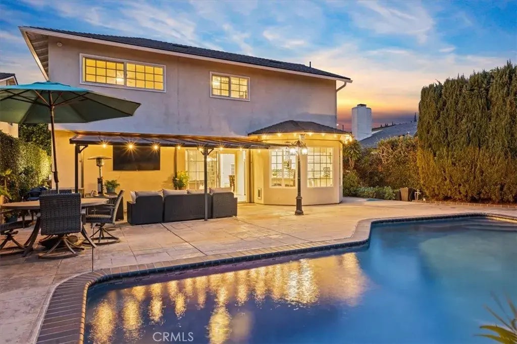 Elegant Solar Pool Home with Resort-Style Backyard! Nestled at the end of a quiet cul-de-sac, this stunning 2,393 sq. ft. two-story home is an entertainers dream, offering a seamless blend of comfort, elegance, and resort-style living. From the moment you step through the custom double entry doors, youll be captivated by the thoughtfully designed spaces and lush tropical landscaping that make this home truly special. Inside, youll find new vinyl flooring, dual-pane windows, recessed lighting, and soaring vaulted ceilings that create a bright and airy ambiance. The spacious living room features a cozy gas fireplace, perfect for relaxing evenings, while the expansive family room, currently used as a billiards area, provides the ultimate gathering space. The remodeled open-concept kitchen features white Shaker cabinets, marble countertops, stainless steel appliances, new electric stove and an oversized island, making it the heart of the home. Upstairs, the original loft has been reconfigured into an ultra-spacious primary suite, complete with a fireplace, custom built-ins, dual mirrored closets, and an ensuite bath featuring a soaking tub. A secondary Junior Suite includes its own ensuite bathroom and walk-in closet, offering privacy and comfort for guests or family members. The dual suite plus an additional two bedrooms will surely provide the perfect space for the whole family and more. Step outside to your private backyard oasis, designed for unforgettable gatherings and relaxation. A sparkling heated saltwater pool with a custom waterfall, thrilling spiral waterslide, and